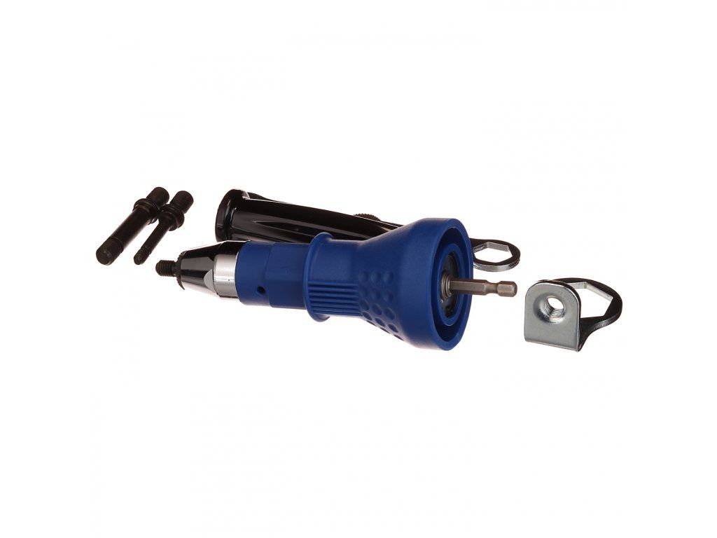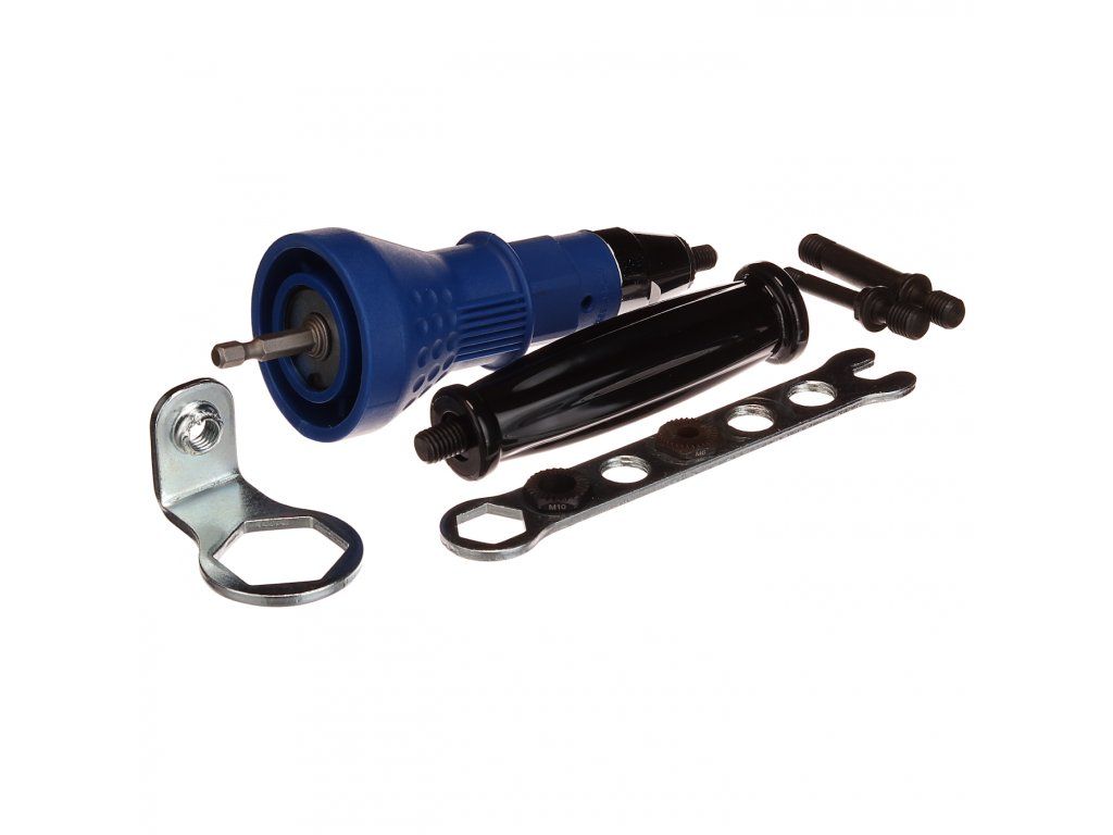 Souprava obsahuje nástavce pro nýtovací matice M6, M8 a M10 s šestihrannou stopkou 1/4" (6,35 mm). Určené pro nářadí s min. krouticím momentem 100 Nm a otáčkami max. 800/min.