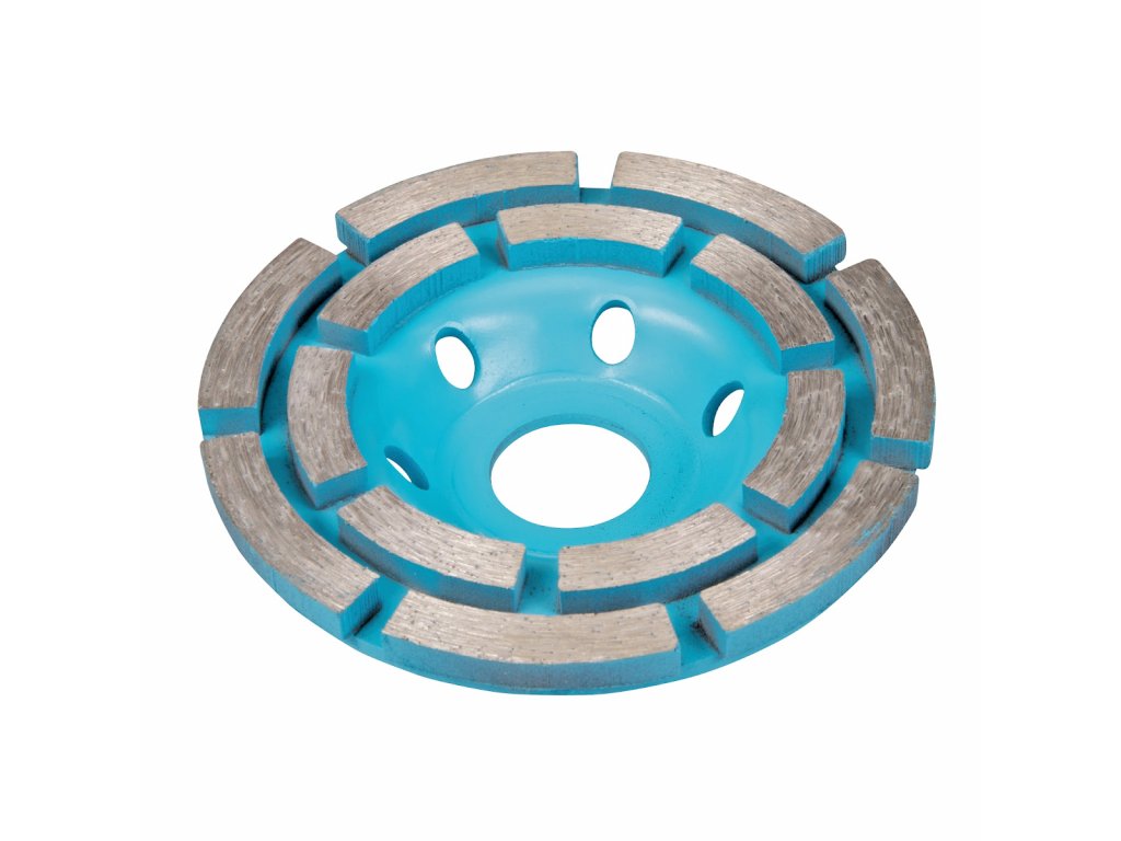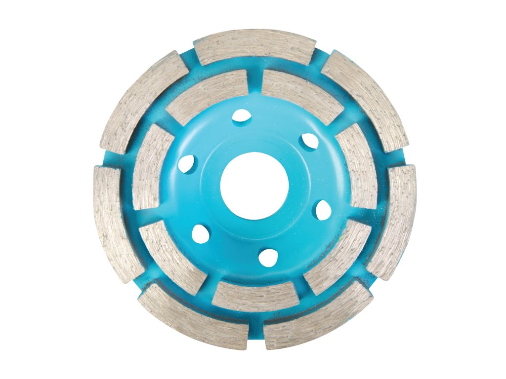 Slinutý diamantový brusný kotouč s výškou segmentu 7 mm pro hladké broušení betonu, zdiva a kamene. Dvojitá řada segmentů dosahuje jemnějšího povrchu. Max. 15 000 ot./min. Kompatibilní se statickými stroji na řezání dlaždic o průměru 22,23 mm a úhlovými bruskami, včetně Silverline a GMC. Mokré nebo suché použití, optimální výsledky při mokrém použití.