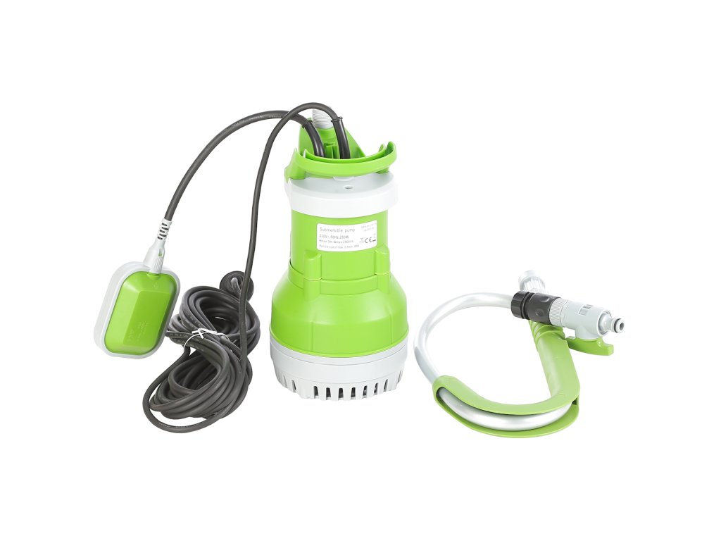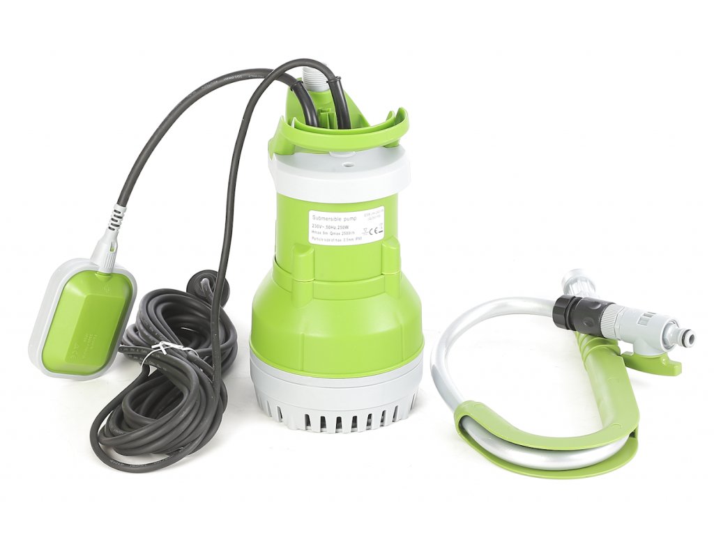 Zařízení je především určeno pro čerpání z jímek na dešťovou vodu s mechanickými nečistotami velikosti max. 0,5 mm. Napájení 230 V/50Hz, krytí IPX8, max. výtlak 9 m, hloubka ponoření max. 7 m, průtok 2 500 l/h. Max. teplota vody 35°C, přípojka na hadici G3/4", max. tlak 0,9 bar, délka kabelu 10 m. Minimální průměr otvoru ve víku sudu pro vložení čerpadla je 210 mm.