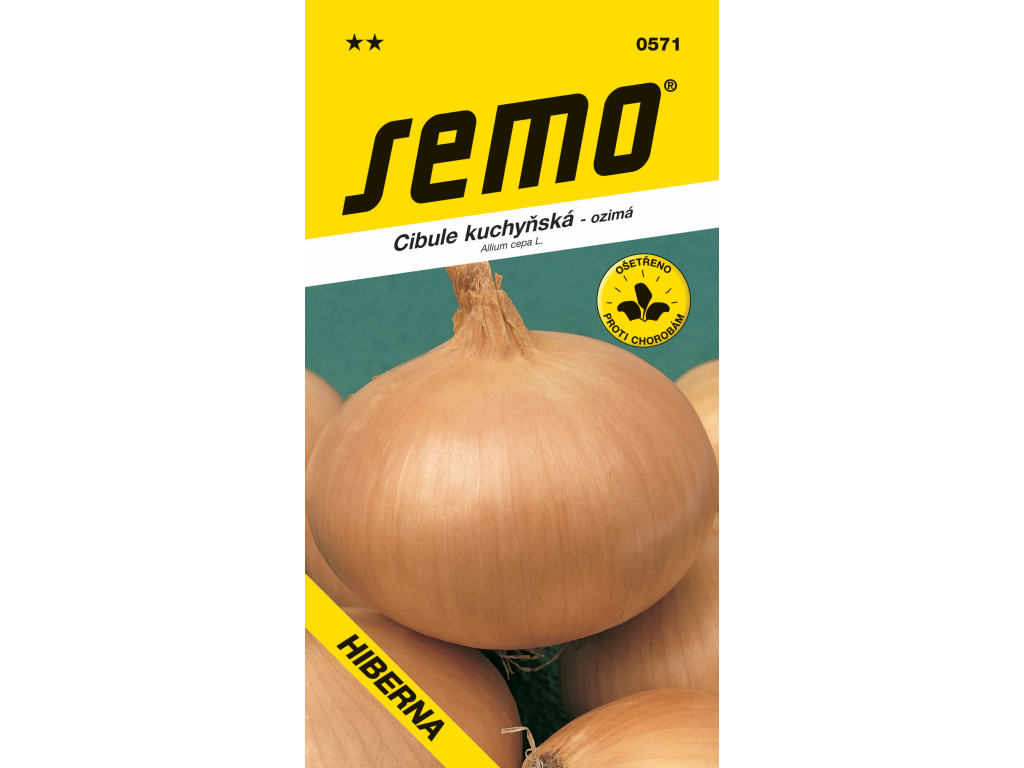 HIBERNA (kód 0571) – výnosná ozimá odrůda s velkou kulovitou až mírně ploše kulovitou cibulí se středním až silnějším krčkem. Dužnina je bílá, pevná, jemné, velmi dobré cibulovité chuti. Cibule je obalena suknicemi žlutohnědé až bronzově hnědé barvy s tmavším žilkováním. Rostliny velmi dobře přezimují. Lze ji sklidit jako cibuli s natí – zelenačku, jako čerstvou i suchou. Vegetační doba je od ledna do sklizně cibule s natí 163 dní, do sklizně čerstvé cibule 185 dnů a suché 205 dnů. Termín sklizně zelenačky je druhá dekáda června. Hmotnost tržní cibule je 55 - 65 g. Je krátkodobě skladovatelná.