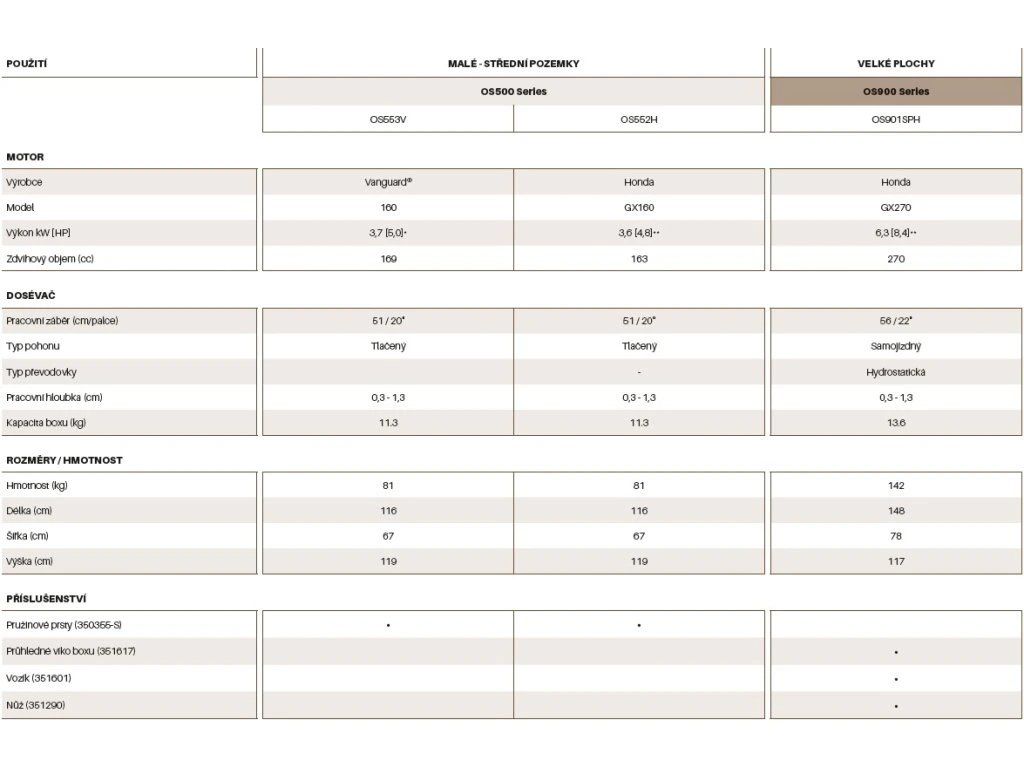 Volitelné příslušenství dosévače Billy Goat OS553V