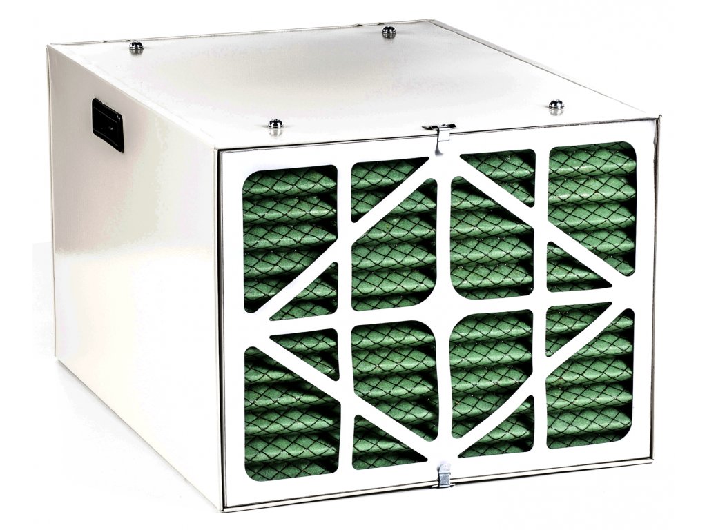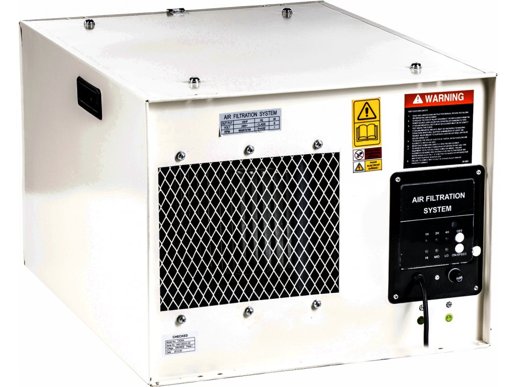 Zařízení slouží k odsávání a filtraci vzduchu v provozech, kde je potřeba odsávat mechanické nečistoty (nevýbušné povahy). Odsavač lze zavěsit ke stropu nebo jej umístit přímo na pracovní stůl. Zařízení lze ovládat přímo na panelu nebo prostřednictvím dálkového ovladače (součástí dodávky). Nastavit lze 3 stupně rychlosti ventilace (780/960/1200 ot./min – 15,75/19,89/29,56 m³/min) a časovač (vypnutí zařízení za 1, 2 nebo 4 hodiny – např. po skončení směny). Dvoustupňová filtrace. Snadná manipulace s filtry. Vnitřní filtr lze čistit stlačeným vzduchem nebo umytím. Tichý chod (63/66/68 dB). Napájení 230 V/50 Hz/150 W.