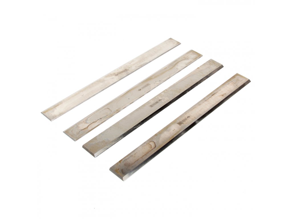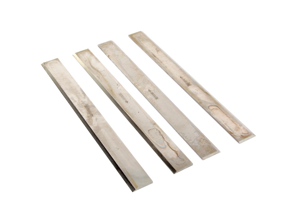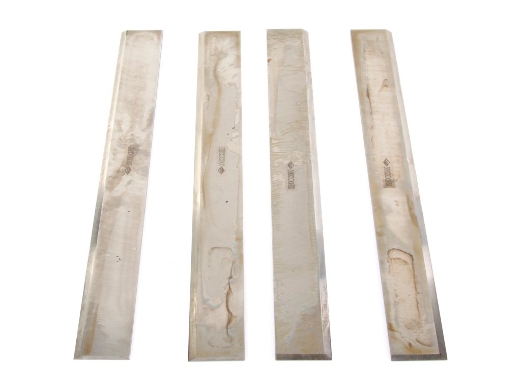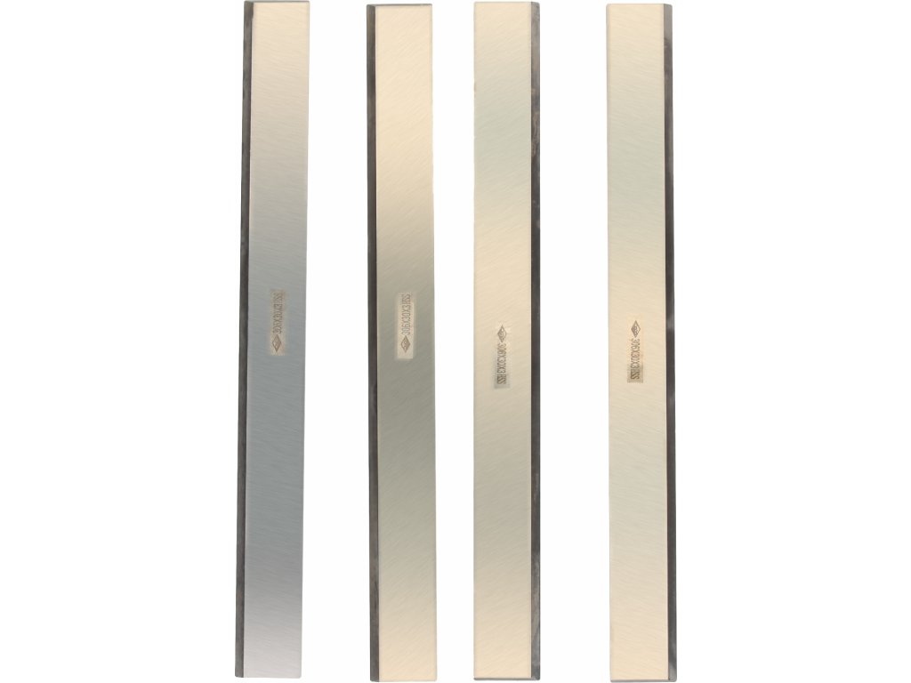 Sada 4 ks hoblovacích nožů. Délka 306 mm, šířka 30 mm, tloušťka 3 mm, vyrobeno z HSS oceli, tvrdost 60 HRC.