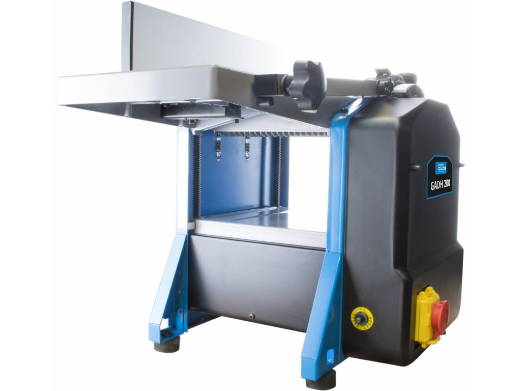 Konstrukce: hliníkový hoblovací stůl (→ d x š: 737 x 210 mm), ochranný kryt nožové hřídele, výsuvná opěrka obrobku,