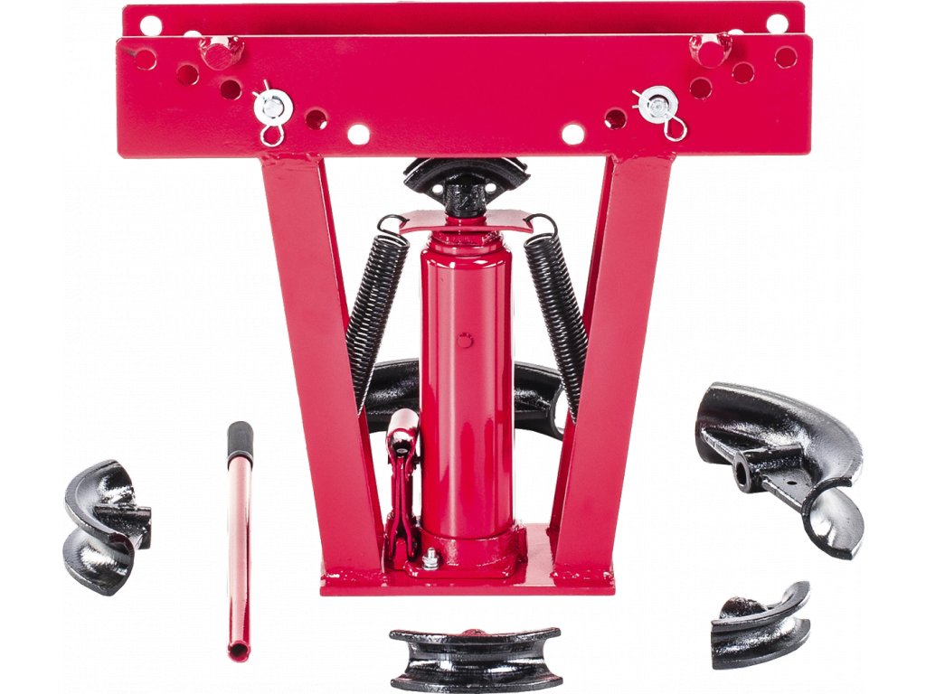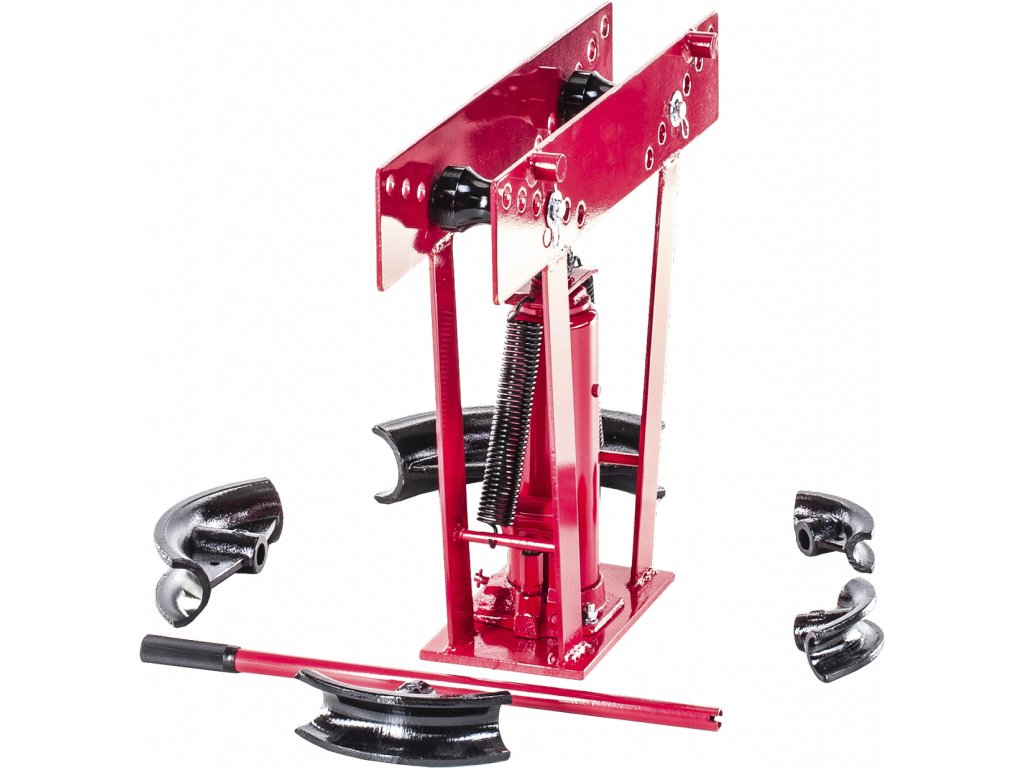 Kompaktní ohýbačka ocelových trubek s tlakem 12 t. Maximální ohyb je 90°. Součástí dodávky je 6 ks litinových lůžek pro ohýbání trubek průměrů 1/2" (15 mm); 3/4" (20 mm); 1" (25 mm); 1 1/4" (32 mm); 1 1/2" (40 mm); 2" (50 mm).