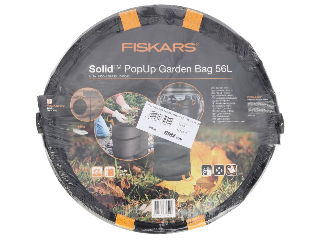Zahradní koš je ideální pro úklid vlhkého zahradního odpadu, jako je spadané listí nebo posekaná tráva. Lze jej složit do 8 cm vysokého balíku pro skladování. Koš má vnitřní pružinu, která jej drží v rozloženém stavu. Je odolný proti plísním a roztržení, má dlouhou životnost a dobře se čistí. Šířka: 400 mm, výška složeného koše: 80 mm, výška otevřeného koše: 460 mm, hmotnost: 600g. Původní Fiskars číslo: 135041.