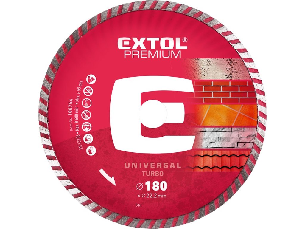 Kotouč diamantový řezný, turbo - suché i mokré řezání, 180 × 22,2 × 2,5 mm