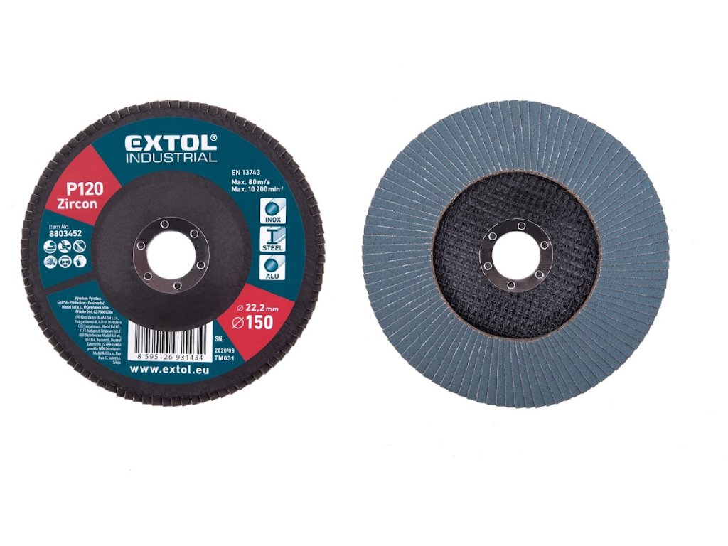 Lamelové kotouče Extol Industrial jsou vyrobeny z materiálů profesionální kvality a zirkonová řady je určena pro nejnáročnější operace při broušení zejména nerezových, žáruvzdorných či jiných speciálních ocelí, jejich svárů, úpravě hran atd.