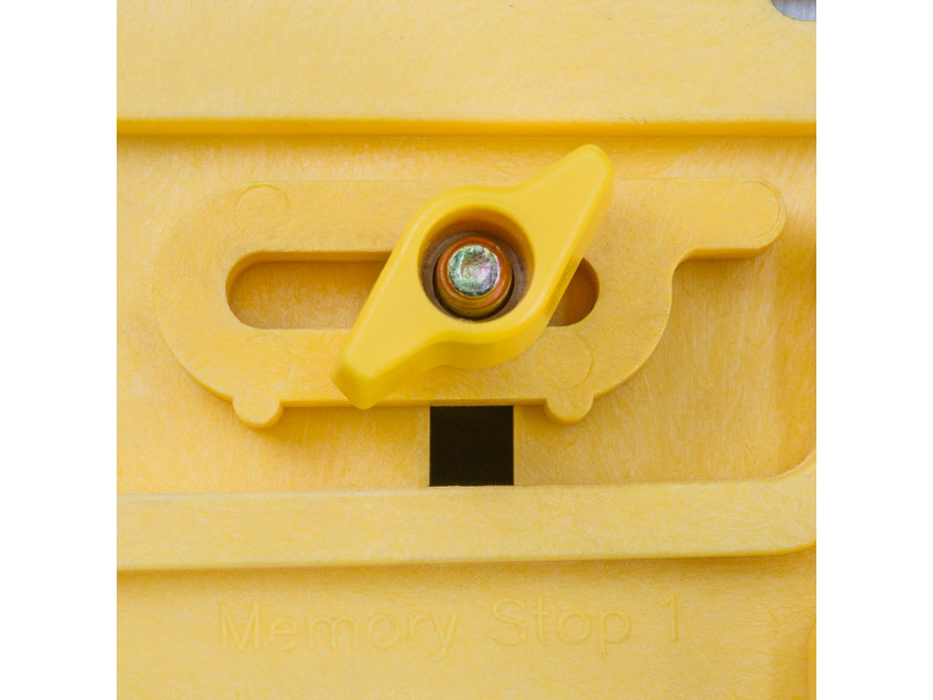 Pomocí barevně odlišeného posuvníku se zámkem ColorMatch nastavíte požadovaný úhel nebo náběh. Okrajovou lištu přípravku zablokujete v požadované poloze. Pro maximální bezpečnost a stabilitu použijte přítlačné posuvky GRR-RIPPER.