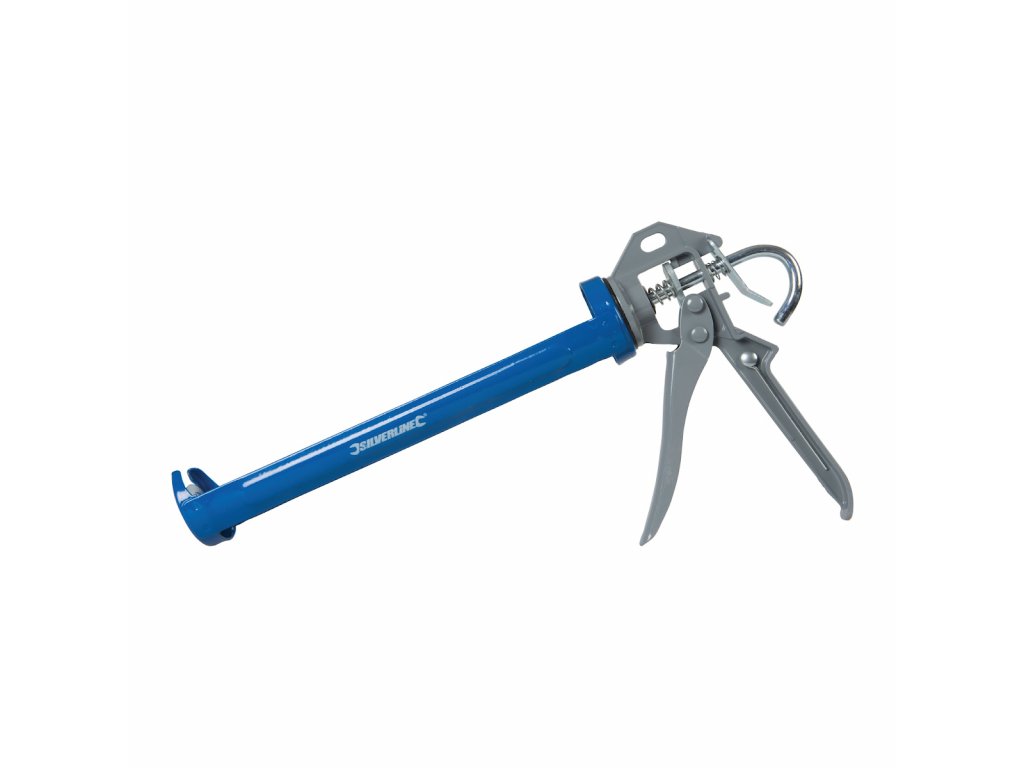 Ocelová kostra těla. Pro snadné nanášení tmelu nebo lepidla kolem rohů bez nutnosti zastavení a přerušování. Rukojeť kombinuje píst a uvolňovací páčku.