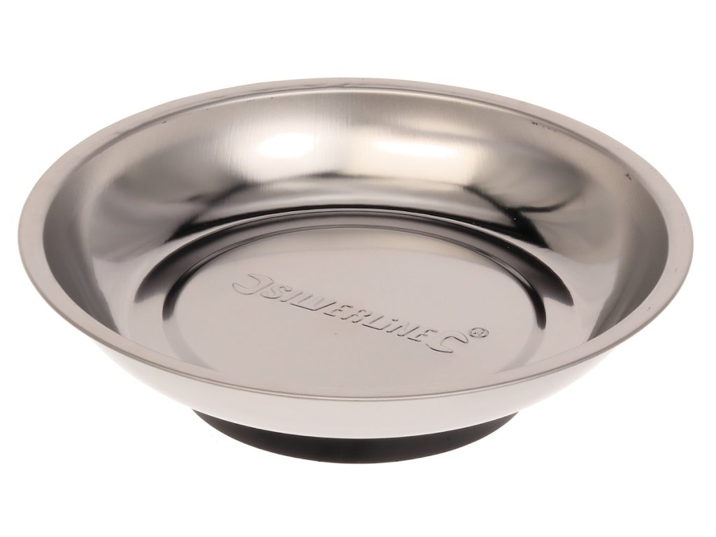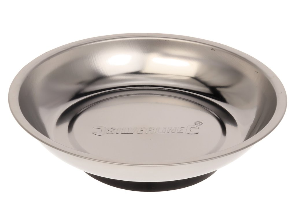 Nerezová magnetická miska s měkkým dnem. Bezpečně drží na jakémkoli železném povrchu. Neškrábe ani nijak nepoškozuje povrch.
