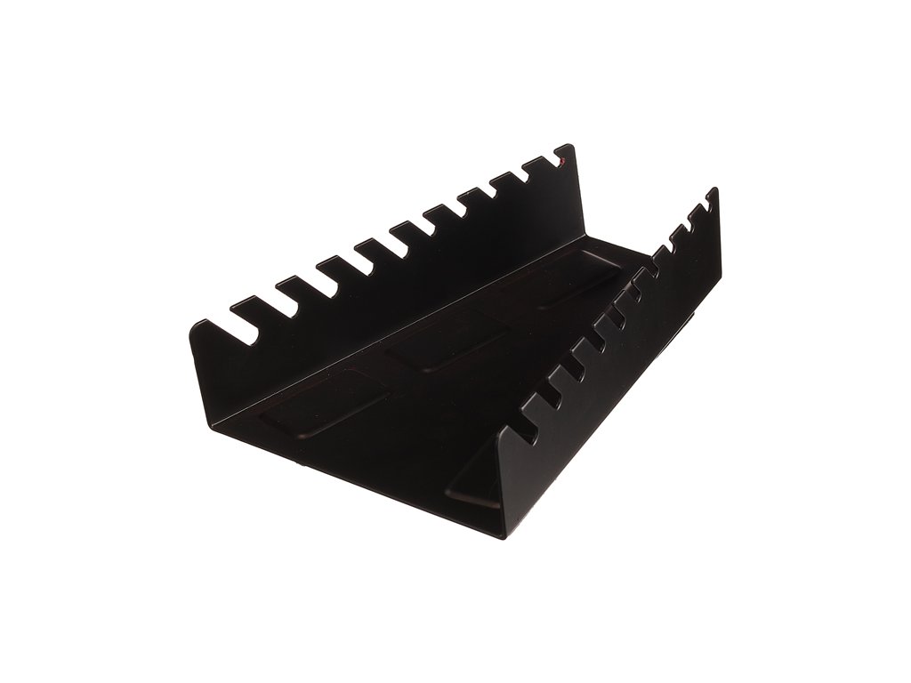 Držák 10 ks stranových klíčů. Díky magnetům lze připevnit ke kovovému povrchu. Materiál: ocelový plech, rozměry: 230 × 145 mm.