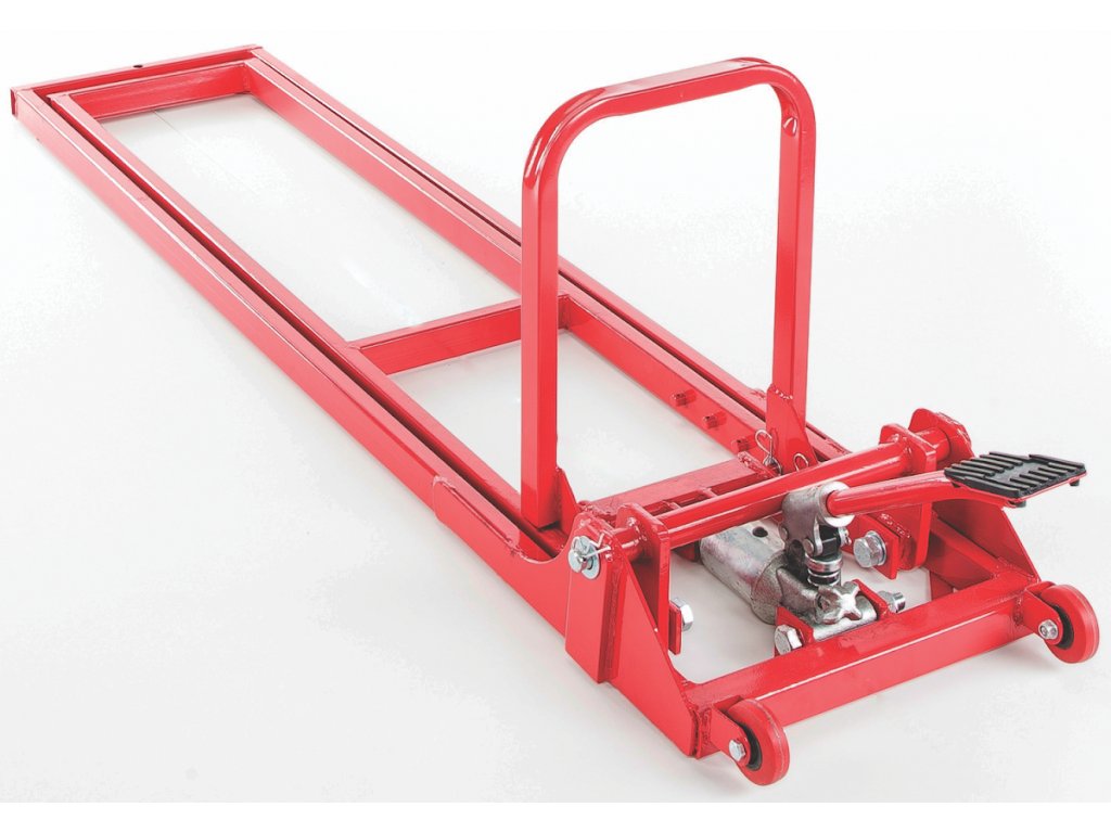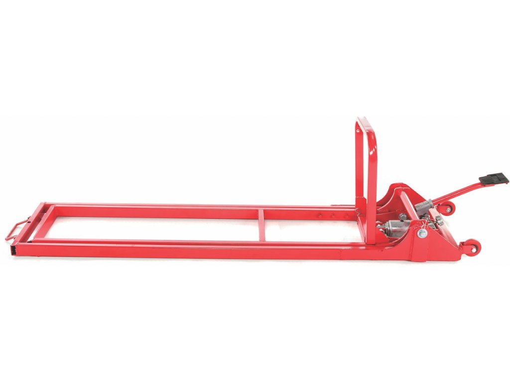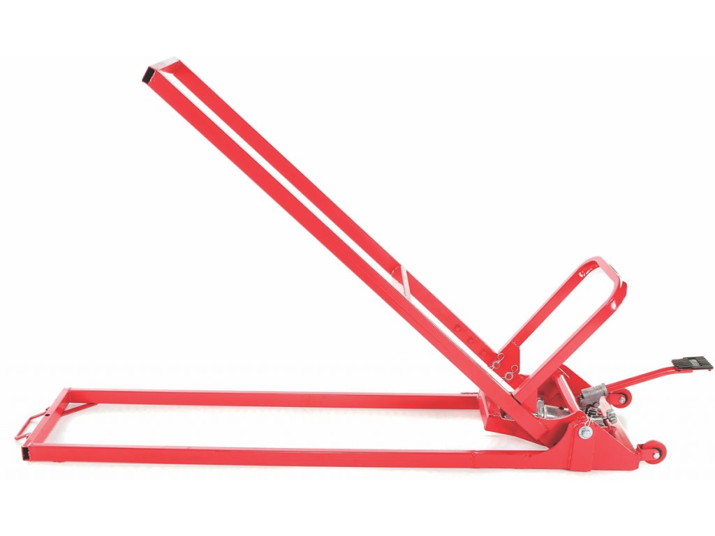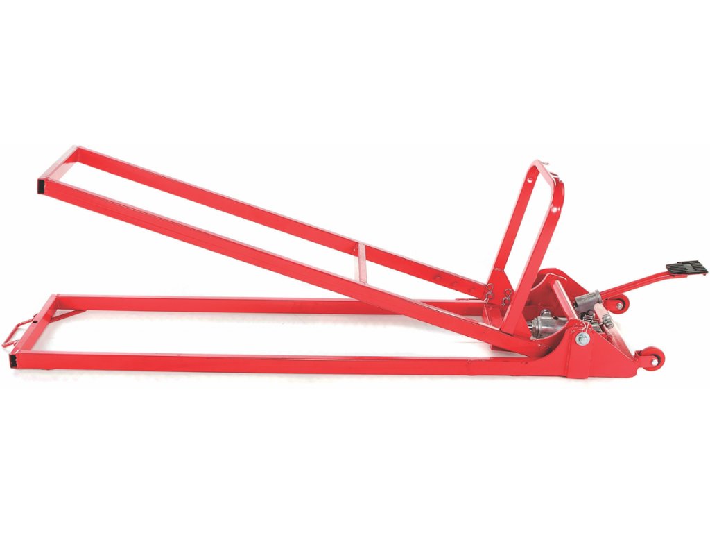 Zvedací zařízení umožňující snadnou údržbu, servis a opravy pojízdné zahradní techniky do šířky 100 cm. např. travních sekaček, kultivátorů apod. Nosnost 400 kg, náklon max. 45°, délka ramene 1 510 mm, šířka 350 mm. Zvedání pedálem pomocí hydraulického válce, spouštění kolečkem odpouštěcího ventilu, pojezdová kolečka pro snadnou manipulaci se zařízením. Rozměry balení 1 640 × 425 × 140 mm.