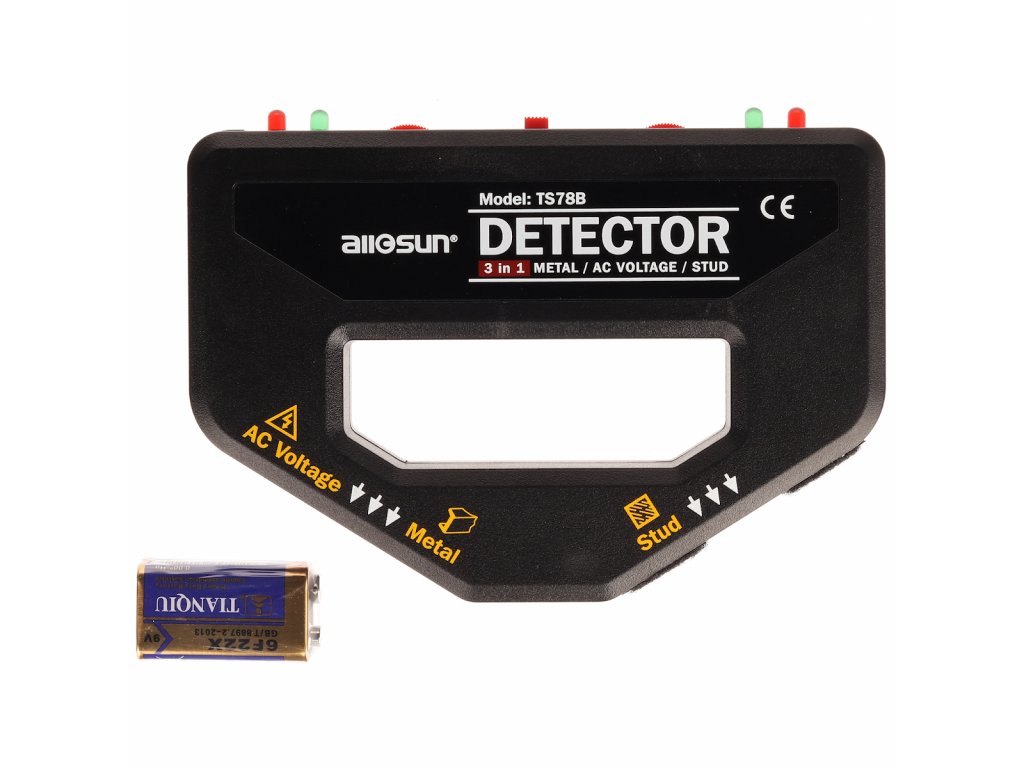 Určený k vyhledávání skrytých dílů ze dřeva, železa, litiny a vodičů pod napětím 230 V/50 Hz pomocí LED indikace a akustické signalizace. Je vhodný zejména pro řemeslníky, elektrikáře i domácí kutily. Detekuje např. dřevěné latě do hloubky 10 mm, železné trubky/litinu do hloubky 20/35 mm a vodiče pod proudem do hloubky 35 mm. Napájení 9 V baterie 6F22, pracovní teplota –20 až 60°C při relativní vlhkosti 30 – 80%. Baleno v blistru.