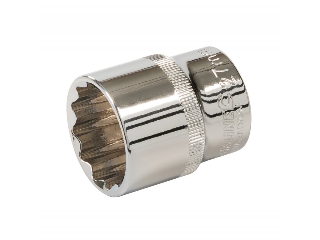 Dvanáctihranný klíč pro maximální přenos točivého momentu na čelní stranu upevňovacího prvku. Přesná za studena kovaná, kalená a temperovaná chrom vanadiová ocel. Leštěná a poniklovaná chromovaná ocel, odolná proti korozi. Zkosené konce a tenké stěny pro pozitivní umístění na upevňovacím prvku. Rýhovaný kroužek zajišťuje uchopení a udržení v ruce a otvor pro usazení zajišťuje pevné připojení k nástroji.