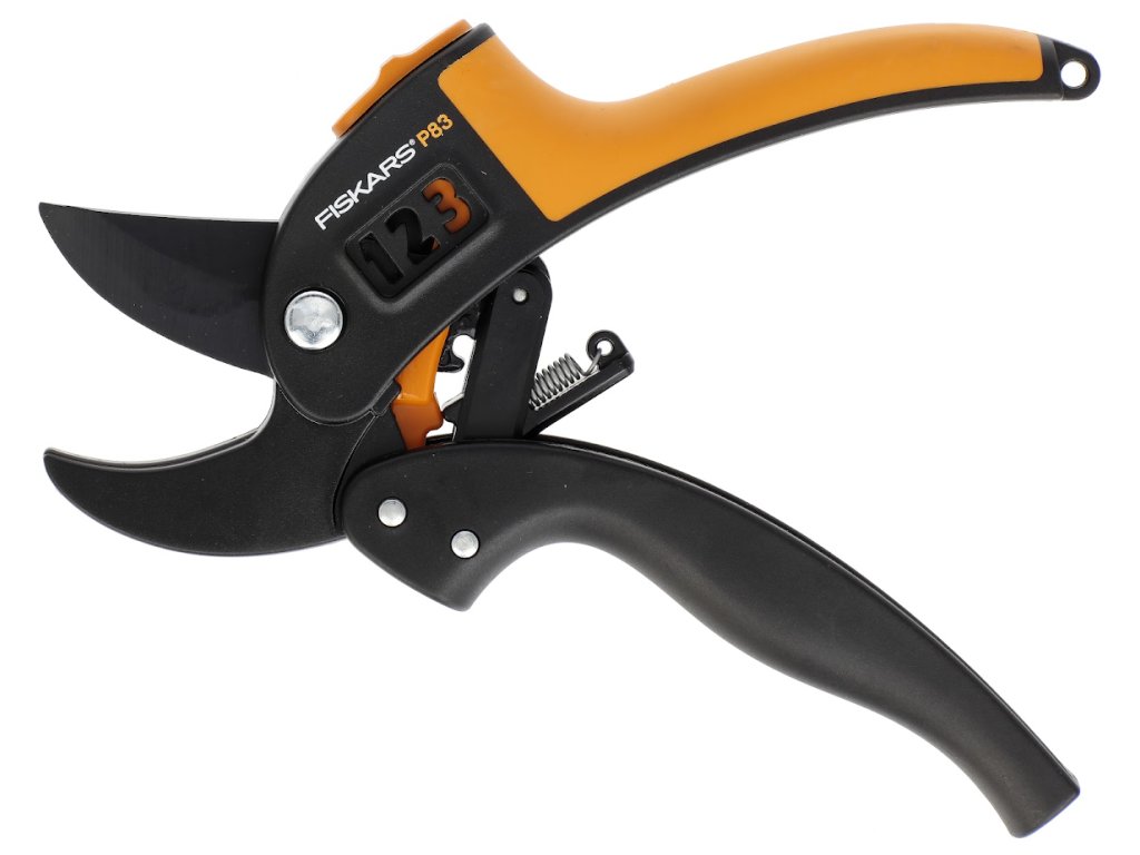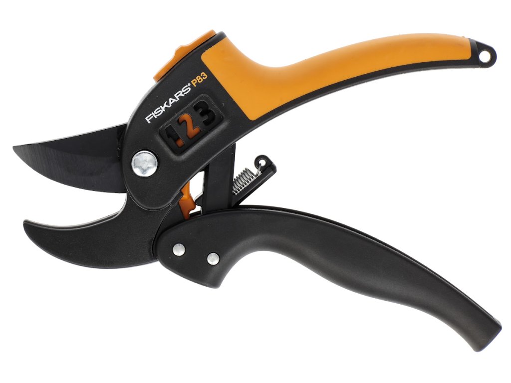 Patentovaná technologie PowerStep™ umožňuje stříhat větve v jednom, dvou nebo třech krocích, nůžky si samy zvolí nejvhodnější nastavení podle průměru stříhané větve. Horní čepel potažená kluznou vrstvou PTFE. Zámek. Pro praváky i leváky. Max. střihaný průměr 20 mm. Délka: 180 mm. Hmotnost: 140 g.Původní Fiskars číslo: 111670. Označení: P83