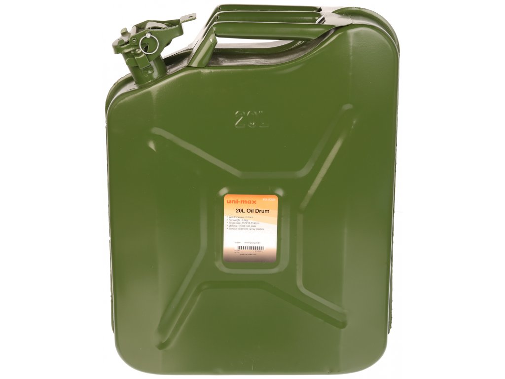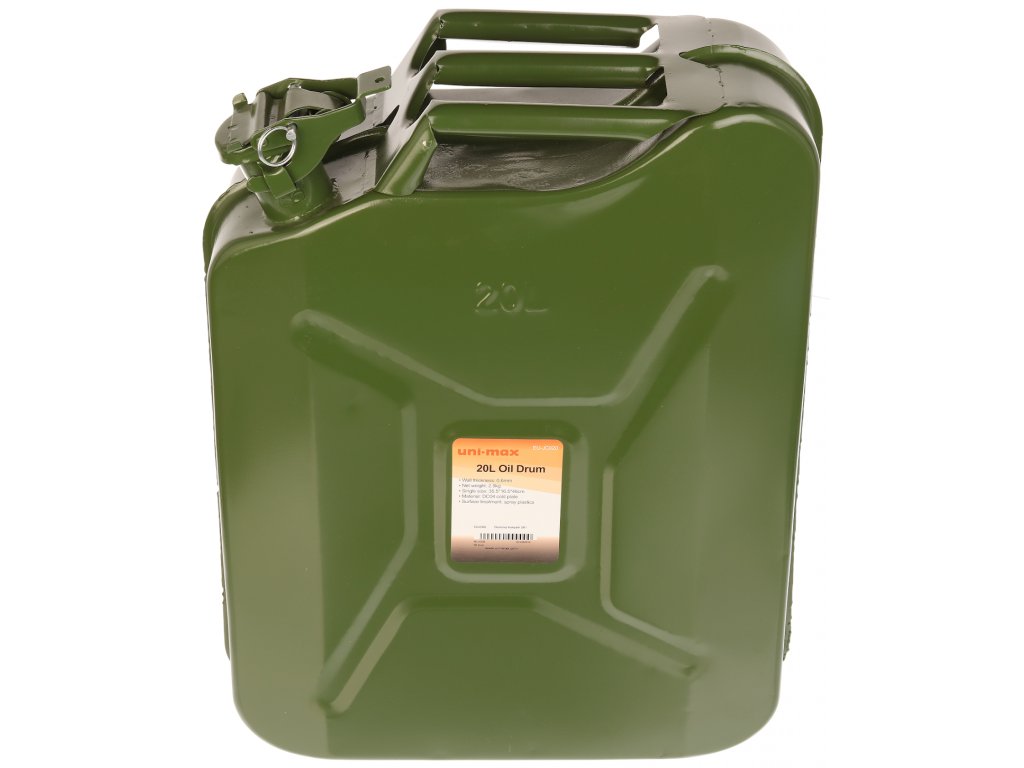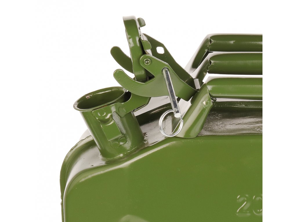 Ocelový kanystr 20 l – robustní konstrukce, armádní styl