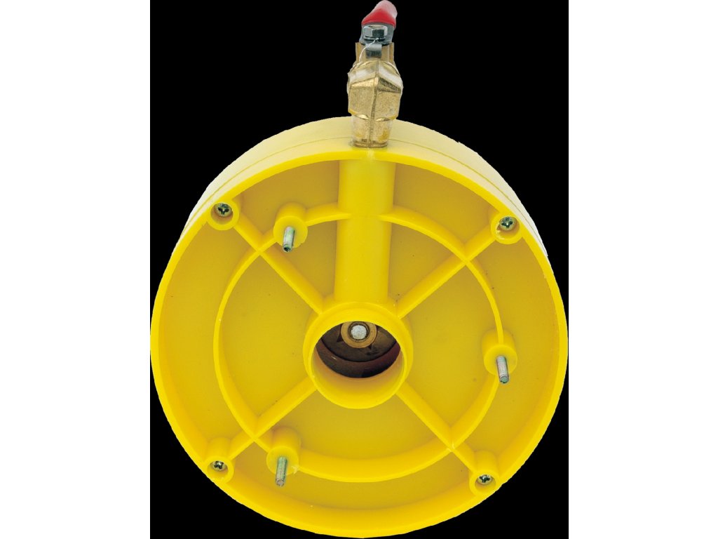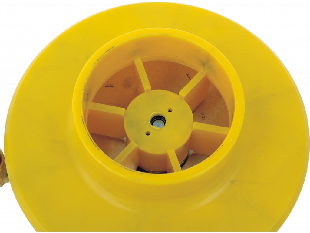 Pneumaticky poháněný ventilátor umožňuje snadné odsávání prachu z pískovacích boxů. Použití běžných vysavačů není vhodné, protože směs vzduchu s prachem abraziva silně poškozuje motor vysavače. U pneumatického pohonu ventilátoru toto riziko samozřejmě odpadá. Prac. tlak 4,5 bar, průtok > 180 l/min, přípojné šroubení G 1/4", s kulovým uzavíracím ventilem. Otáčky ventilátoru 6 000/min. Upevnění 3 × šroub M4. Průměr 152 mm, hloubka 110 mm. Průměr výstupního hrdla 76 mm, vstupního 35 mm.