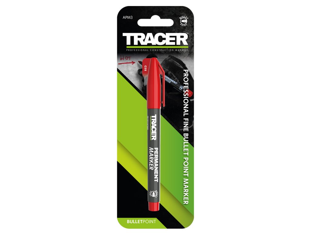 Permanentní popisovač schopný značit dlaždice, plast, dřevo i kov. Úzká a robustní tuha s rychleschnoucím inkoustem. Ideální pro běžné řemeslnické práce. Dostupná v 3 barvách.