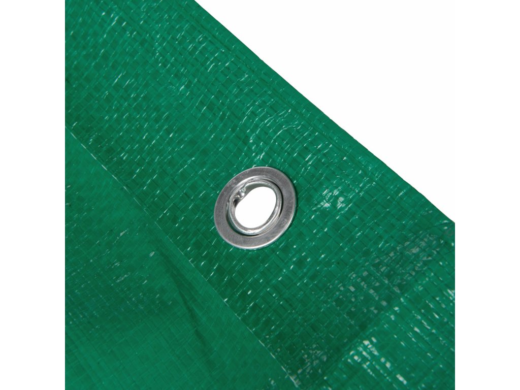Polyetylen 140 GSM vyztužený UV vlákny s pevným lanem, tepelně utěsněným lemem se zesílenými kryty rohů. Odolné proti roztržení, vodě a plísním. Nerezové kovové průchodky v rozestupech 1 m. Pro ochranné aplikace včetně budov, zastřešení a prodejních stánků. Maximální tolerance 50 – 100 mm na skutečně udávané velikosti.