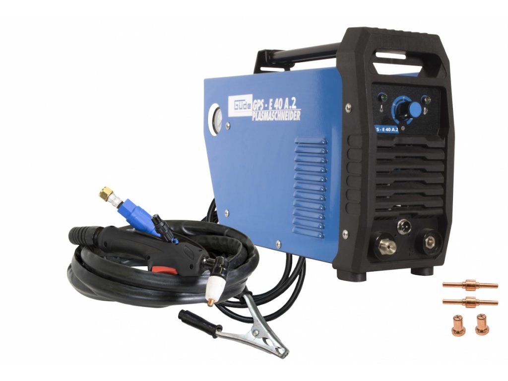 Vybavení: 2,5 m plazmový hořák, zemnicí kabel se svorkou, řezací trysky ø 1,2 mm (2), elektrody (2).