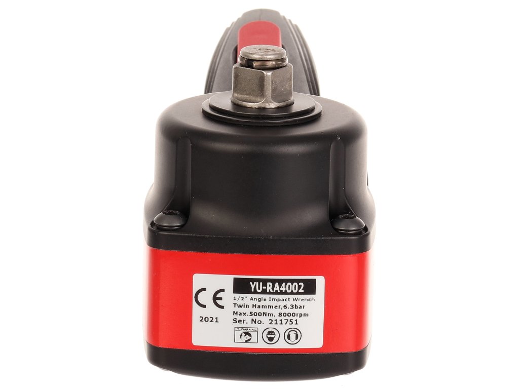 Vhodný pro montážní práce na těžko dostupných místech, zejména při opravách automobilů. Výkyvná hlava ±60°, otočná rukojeť, max. utahovací moment 500 Nm, P/L chod. průměrná spotřeba vzduchu 113 l / min., pracovní tlak 6,2 bar, otáčky 8 000/min., připojení tlaku vzduchu 1/4". Rozměry 85 × 65 × 277 mm.