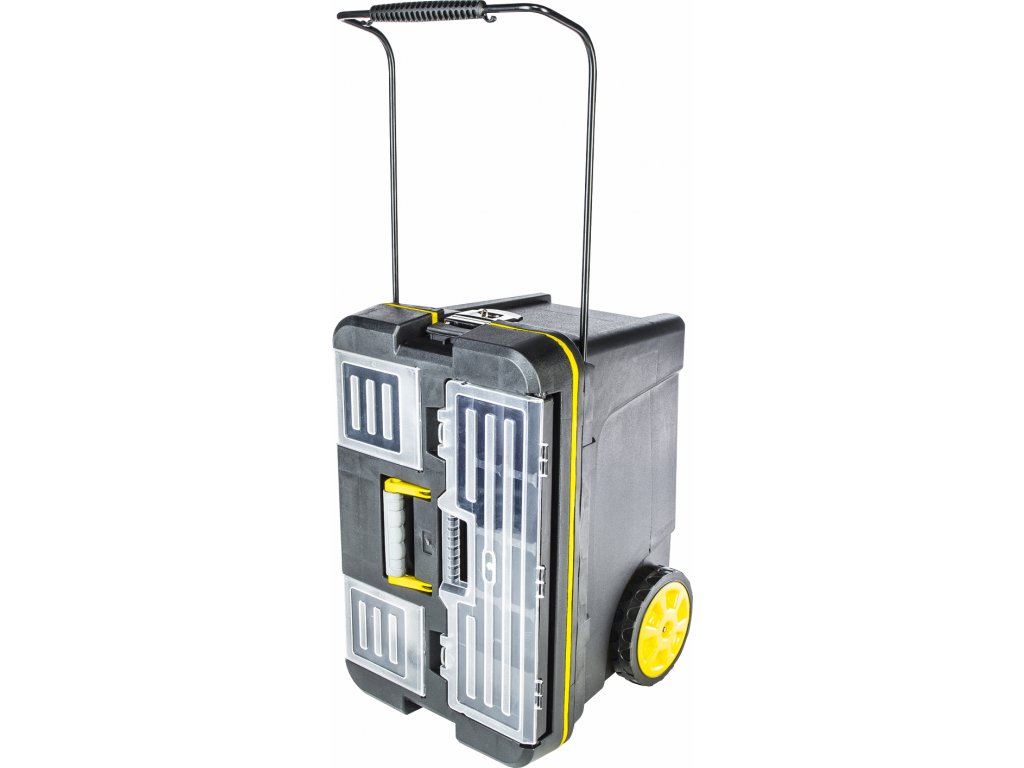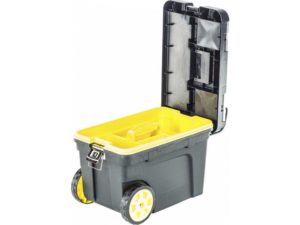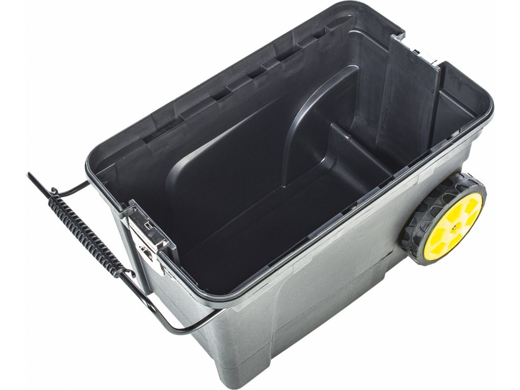 Pro snadnou manipulaci je vybaven rukojetí a 2 kolečky s pryžovými obručemi. Box obsahuje odnímatelné horní víko se zapuštěným sklopným madlem a 3 přihrádky pro drobný spojovací materiál, vyjímatelnou vanu s pevným madlem. Rozměry 620 × 375 × 420 mm.