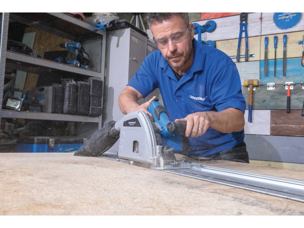 Pila pro volné vedení i použití s vodící lištou, vhodná pro lehké až středně těžké řezání dřevěných podlahových desek, kuchyňských desek a podobných materiálů. Je vybavena portem pro odsávání prachu, pomocí spojovacích prvků, které jsou součástí tohoto setu můžete obě lišty 2 x 700 mm spojit v jednu pro provádění dlouhých řezů. Kotouč 165 × 20 mm se zuby karbidu wolframu 24T řeže přírodní a kompozitní dřevo. Snadno přístupný zámek hřídele pomáhá rychlé a pohodlné výměně kotouče. Ponorný zámek pro zvýšení bezpečnosti, měkké rukojeti. Rozsah úkosu 0 - 45°, max. hloubka řezu 56 mm, rychlost bez zatížení 5200 min-1.