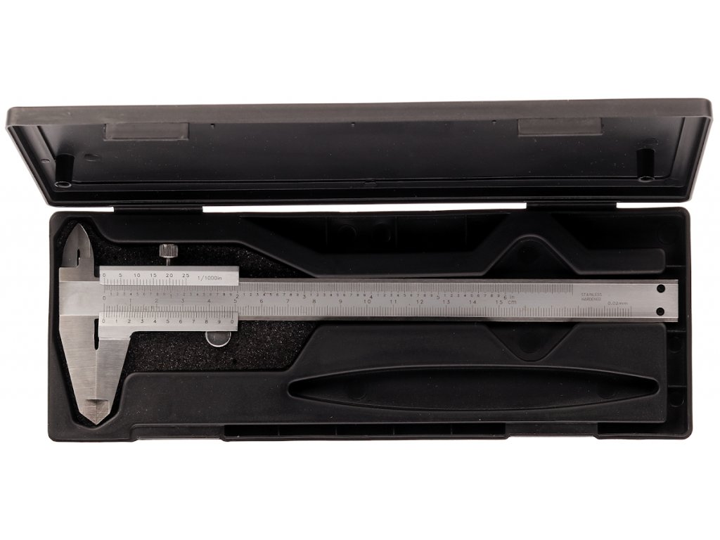Klasické posuvné měřítko dodávané v plastové kazetě.