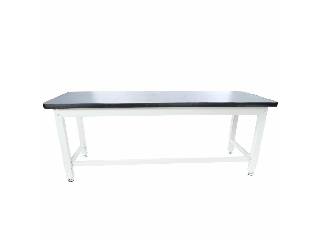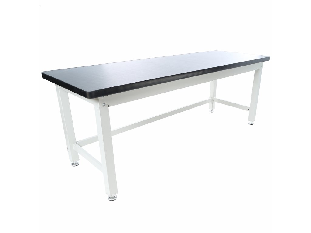 Pevný pracovní stůl z kovových profilů 60 × 60 mm, je vybaven kvalitní pracovní deskou 2 100 × 750 mm a výškově stavitelnými koncovkami na nohách pro vyrovnání nerovností podlahy. Materiál vrchní desky – MDF 38 mm + 2 mm PVC. Nosnost 1000 kg.