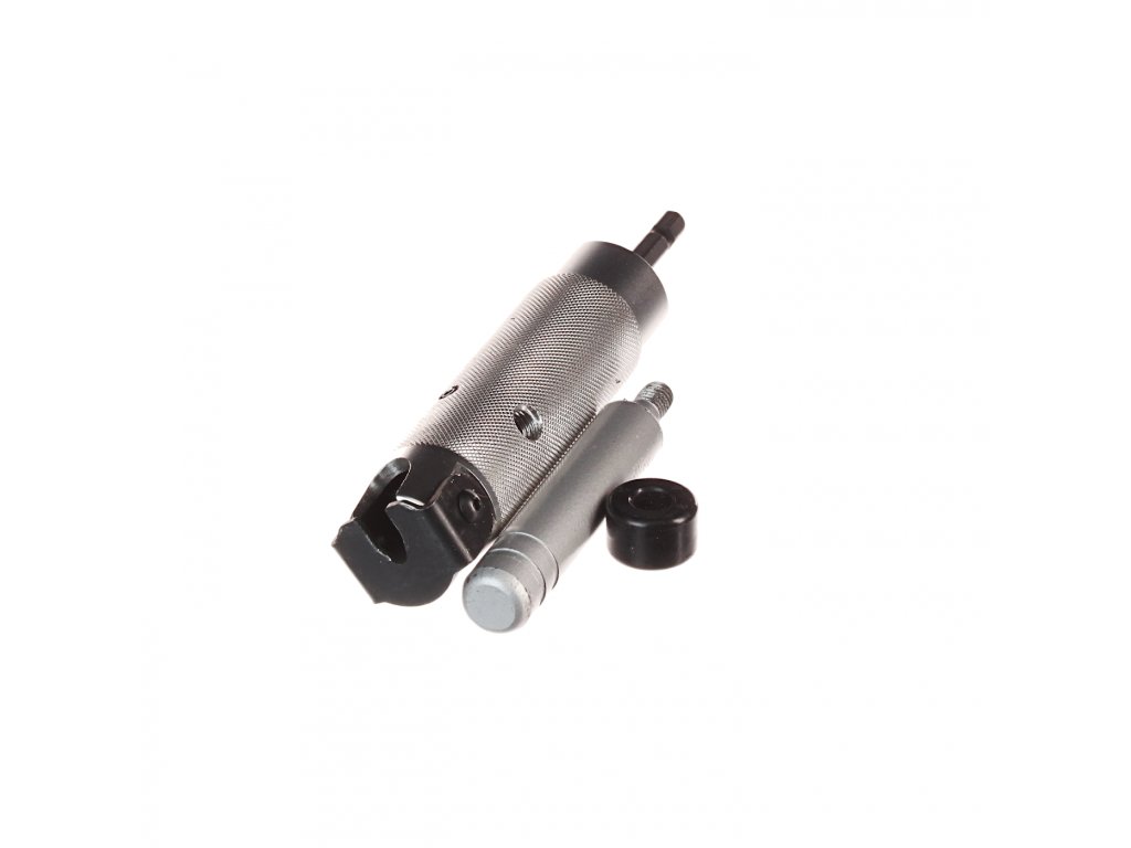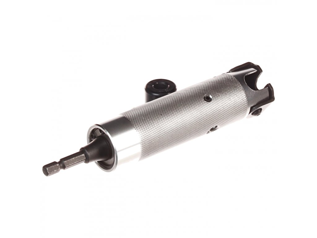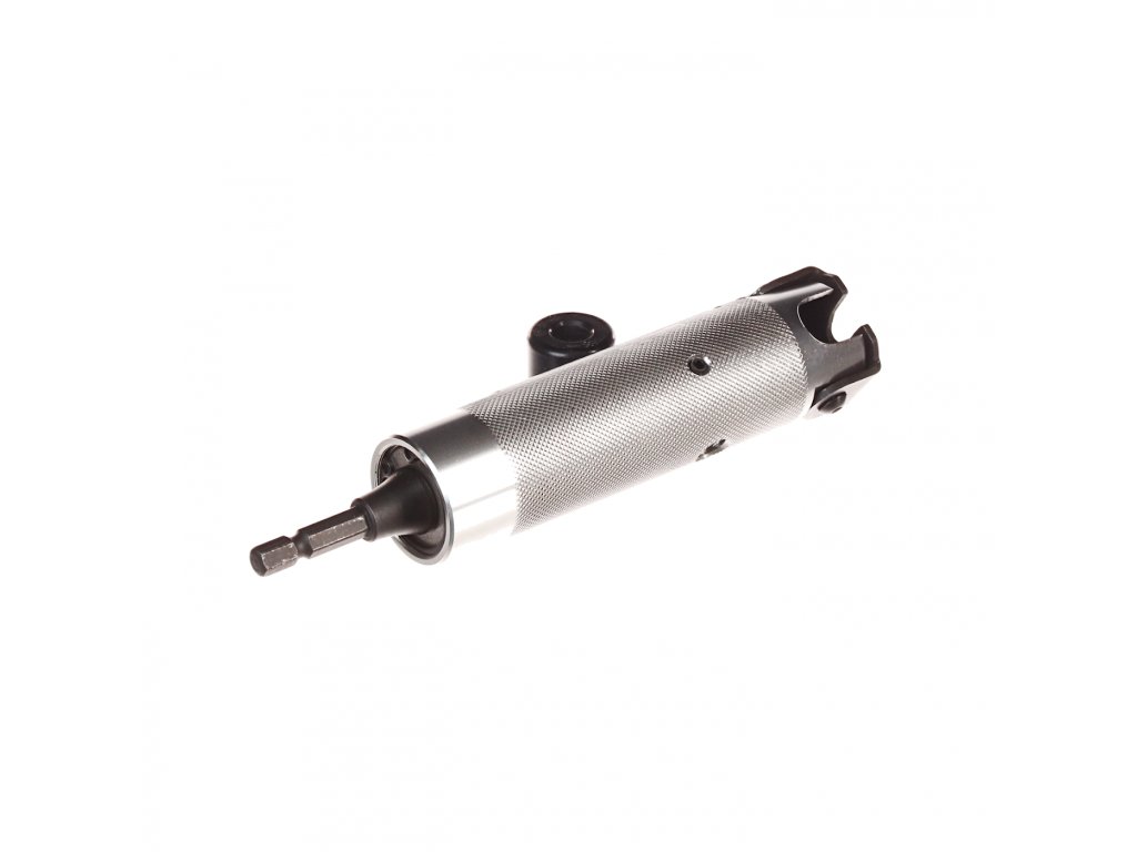 Přípravek je vhodný pro montáž kovových, dutinových hmoždinek do sádrokartonu. Umožňuje rychlou a bezpečnou práci. Používá se s AKU vrtačkou/šroubovákem. Pro hmoždinky se šroubem M4; M5 a M6. Rozměr přípravku Ø30x120(160) mm, rukojeť Ø16x80(96), závit M8x10 mm, plastový mezikroužek Ø20xØ8,3x13 mm.