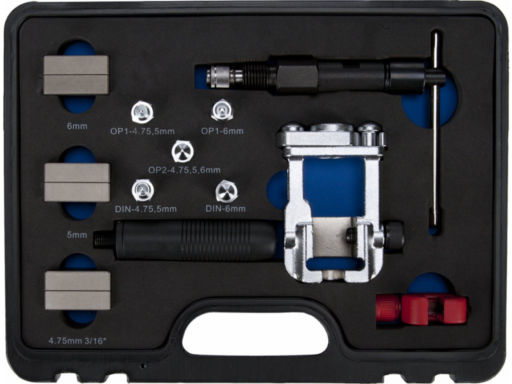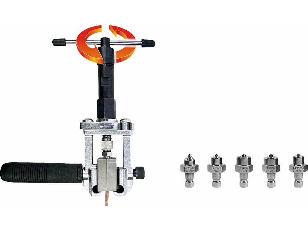 Přípravek umožňuje vytvořit připojovací sedla na brzdovém potrubí světlosti 4,75; 5 a 6 mm pro připojení pomocí převlečných matic. Při dostatku místa lze použít přímo na vozidle, bez nutnosti demontáže celého potrubí.
