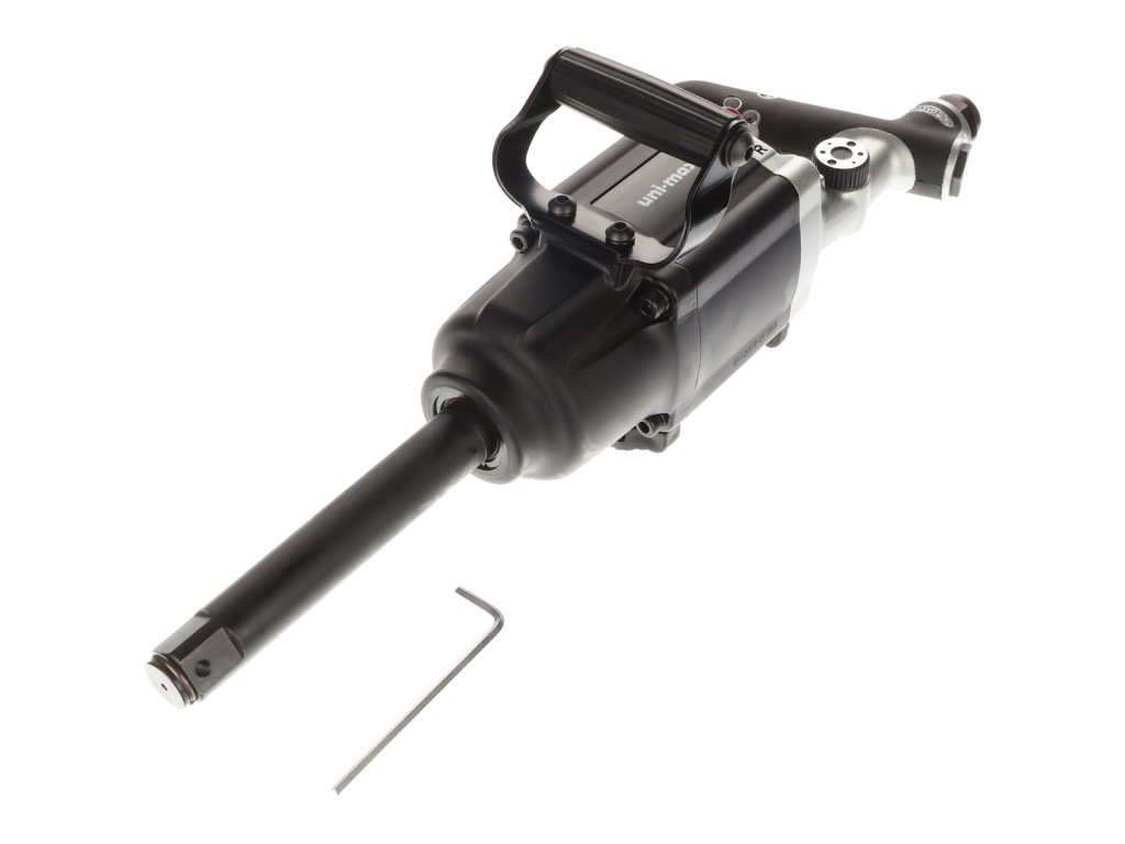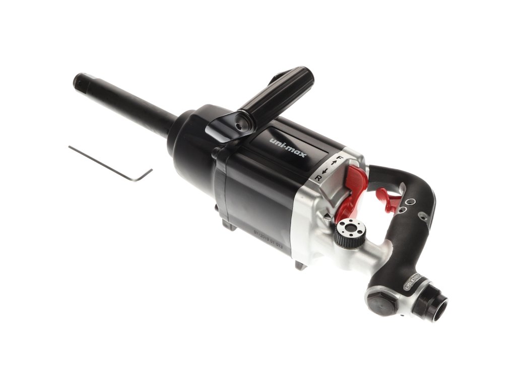 Rázový utahovák se systémem TWIN HAMMER (dvojitý úderník) pro nástrčné klíče s upínacím čtyřhranem 1" disponuje přepínáním levý/pravý chod a regulátorem rychlosti. Otáčky max. 5 000/min, pracovní tlak 6,3 bar, spotřeba vzduchu 260 l/min, kroutící moment 2 700 Nm. Vstupní šroubení 1/2”, minimální doporučený vnitřní průměr hadice 1/2”, celková délka 550 mm.