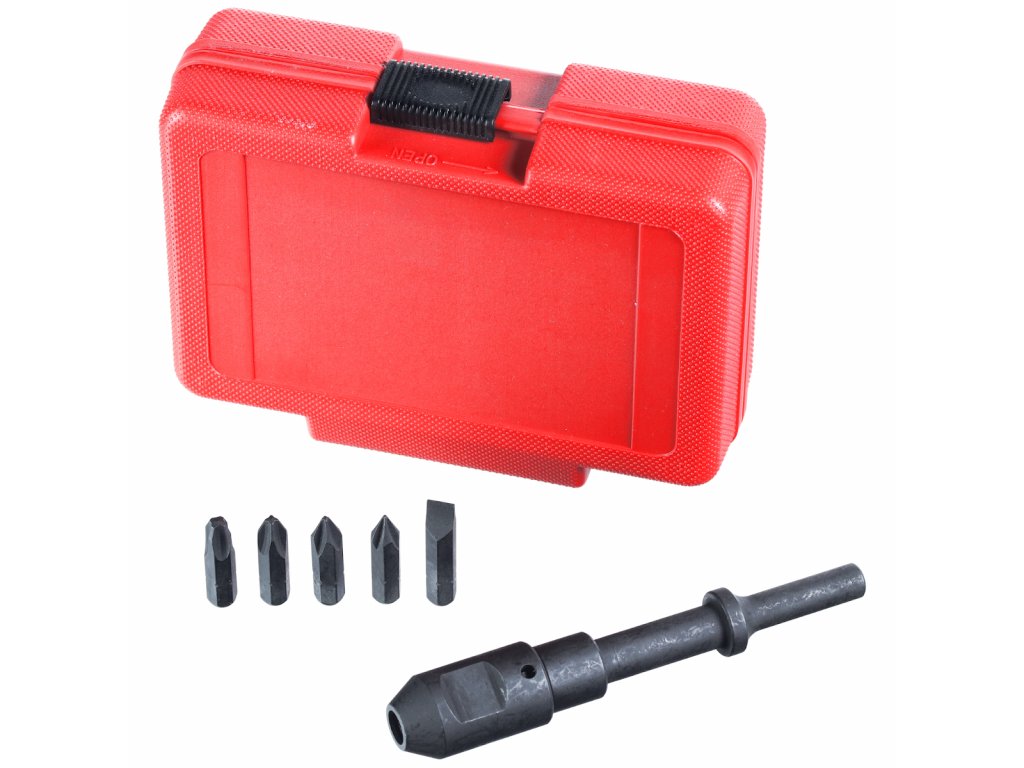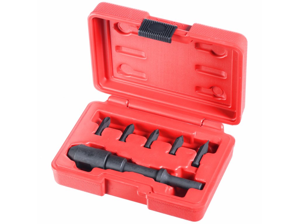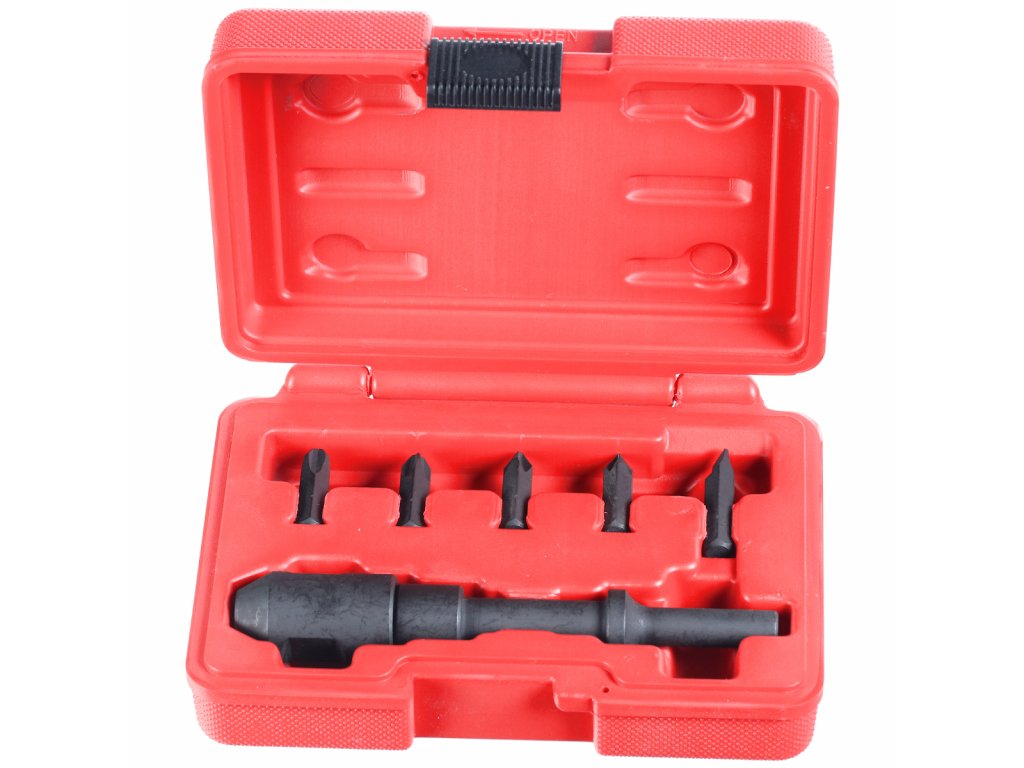 Sada pro rázové povolení šroubů s pomocí pneumatického sekáče a otevřeného 3/4" klíče. Sada bsahuje rázovou hlavu a bity PH1, PH2, PH3 a PH4. Dodáváno v plastovém kufru.