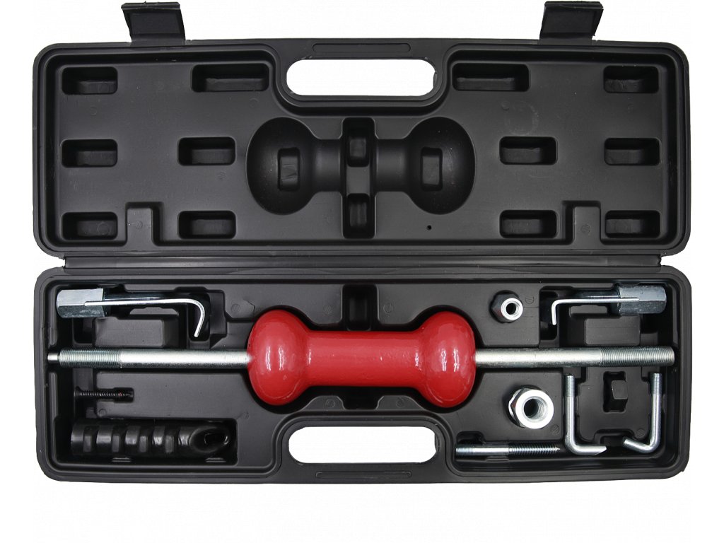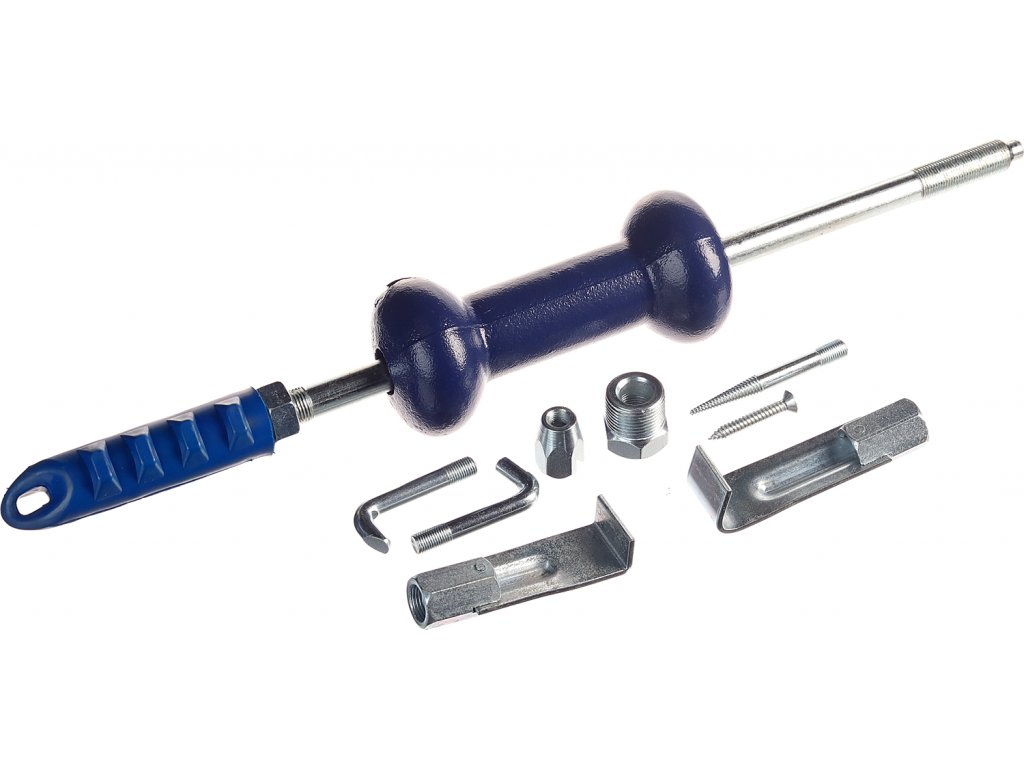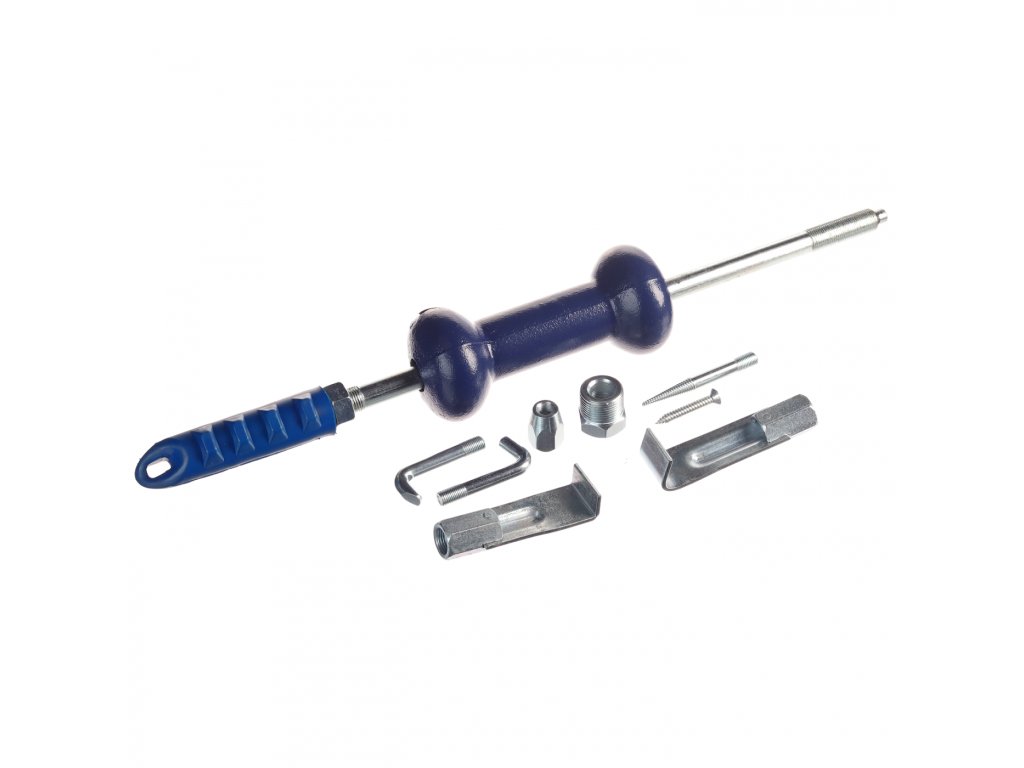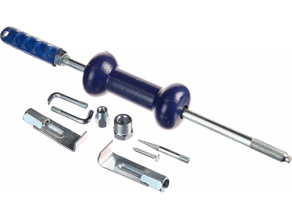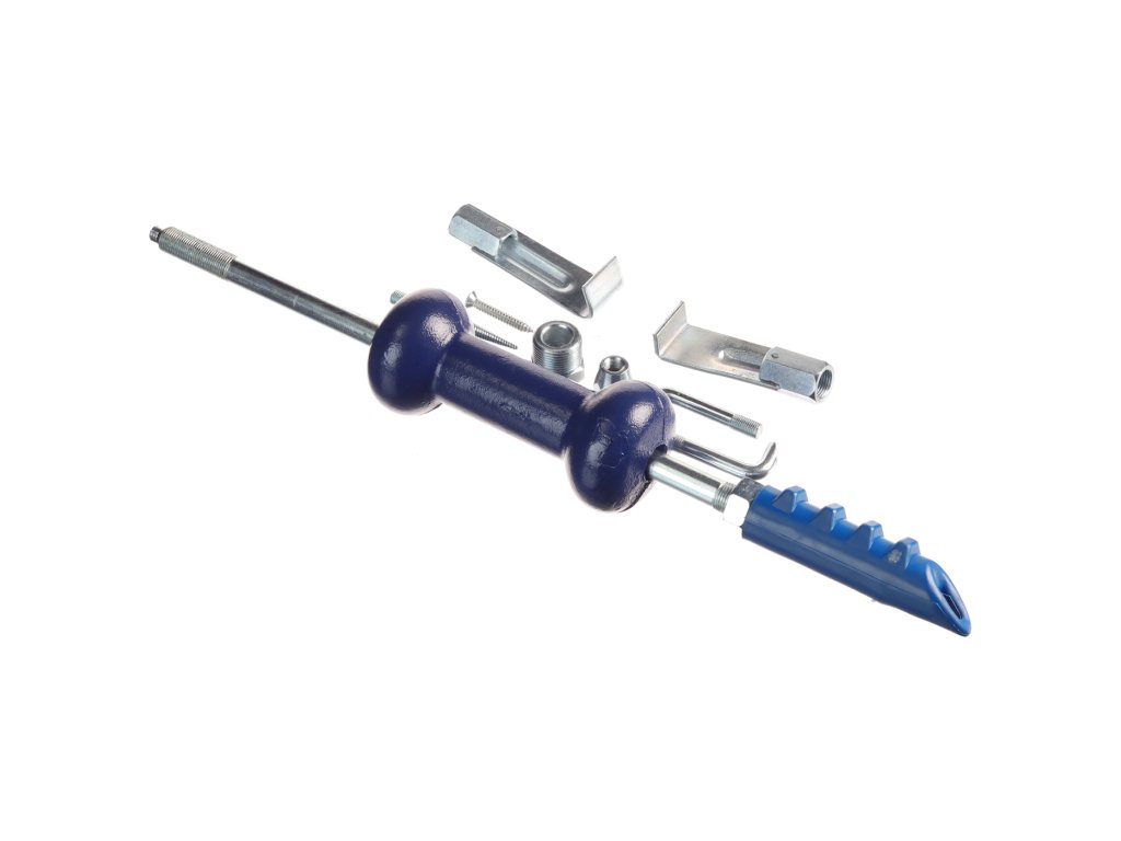 Umožňuje snadné vytahování deformovaného plechu na karosérii vozidla. Kluzné kladivo o hmotnosti 2 kg. Sada obsahuje 2 ks vytahovacích nástrojů s přímým připojením, 4 ks nástrojů s připojením přes přiloženou redukci a adaptér s vnějším závitem.
