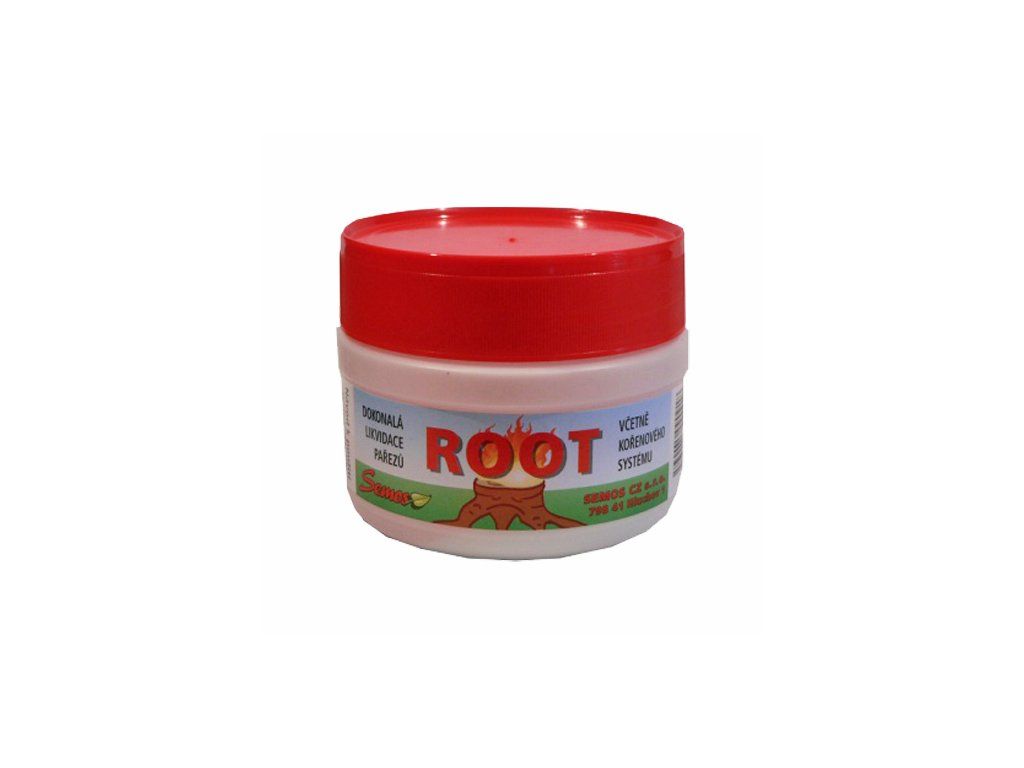 ROOT přípravek pro likvidaci pařezů včetně likvidace kořenů. Optimální doba pro aplikaci je min. po 6 měsících od uřezání stromu (když už nevytéká míza). Do pařezu se vyvrtají otvory, počet otvorů je závislý na velikosti pařezu:
