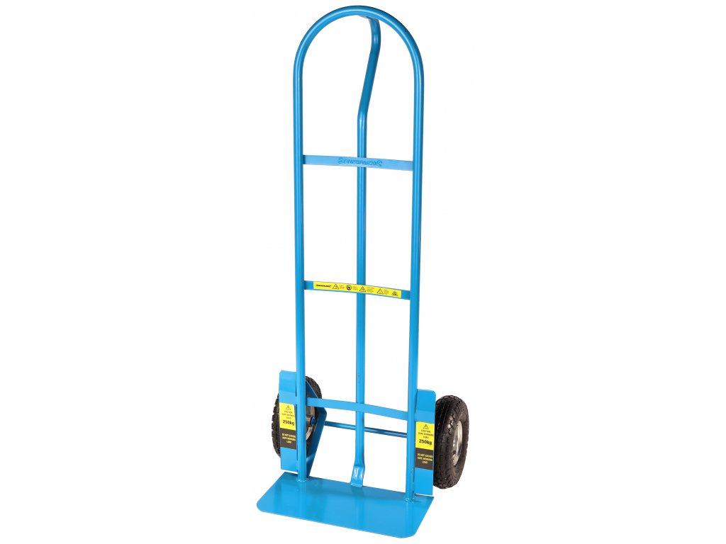 Odolný přepravní vozík, vhodný na převážení pytlů a dalšího zboží. Robustní trubkový rám pro náročné každodenní použití ve skladech, kancelářích a domácnosti. Kvalitní svařované spoje a povrchová úprava práškovou barvou. Oválná rukojeť s přídavnou úhlovou rukojetí pro snadné zvedání a manipulaci, velká plocha pro náklád, bantamová kola s ocelovými kryty zvládnou různé terény, bezúdržbová, utěsněná kuličková ložiska zajišťují hladké a tiché otáčení kol. Celková výška 1300 mm. Nákladová deska 450 × 220 mm.