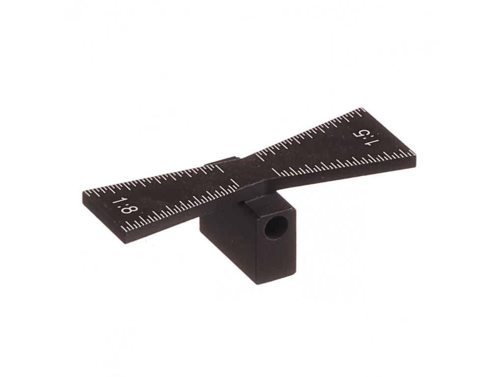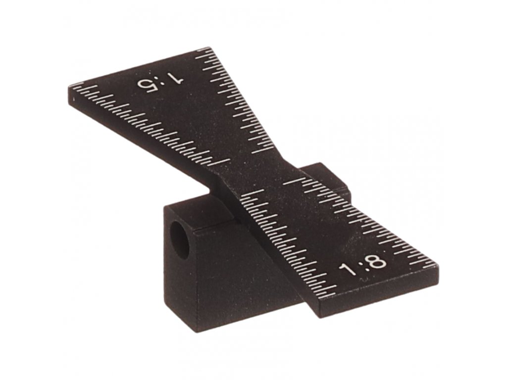 Tento jednoduchý nástroj se používá na označování úhlů rybin. Pomocí tohoto přípravku se zajistí přesné čepování dřevěných desek. Strana 1:8 je určena pro tvrdé dřevo, strana 1:5 pro měkká dřeva, např. jehličnany. Vyrobeno z tvrzeného hliníku.