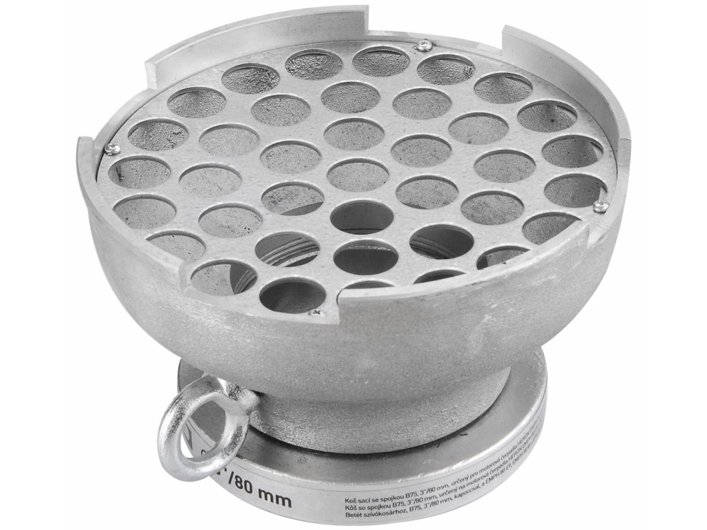 Sací koš se spojkou B75 3"/80 mm, určeno např. pro 8895106, 8895105, 8895102, průchodnost zrna 30 mm, minimální výška sání 10 mm, materiál slitina hliníku, ocel. Nezbytný doplněk pro sací hadice k čerpadlům.