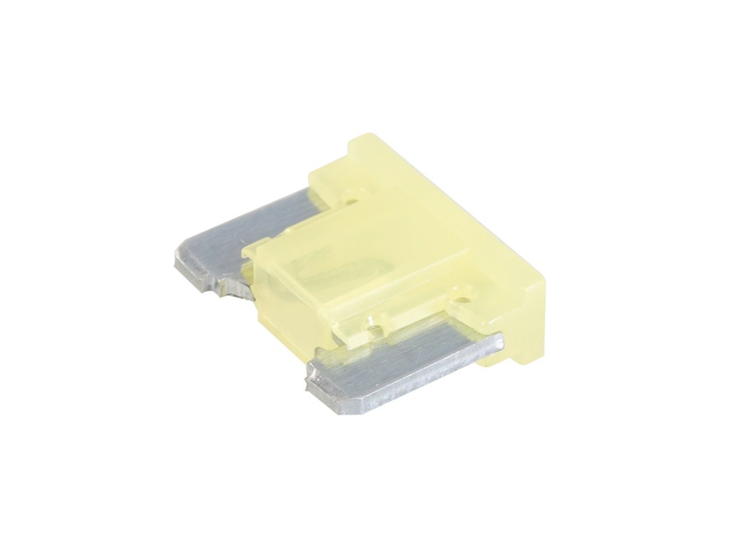 Mini automobilová, níkoprofilová, nožová pojistka v pouzdře z nylonu. Jmenovité napětí 32 V DC.