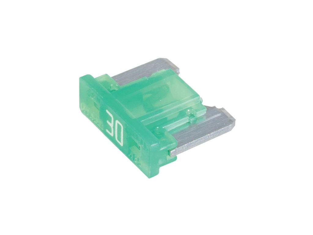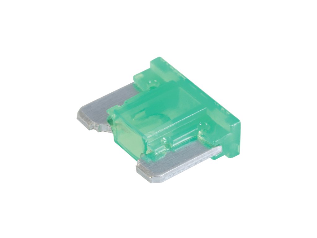 Mini automobilová, níkoprofilová, nožová pojistka v pouzdře z nylonu. Jmenovité napětí 32 V DC.