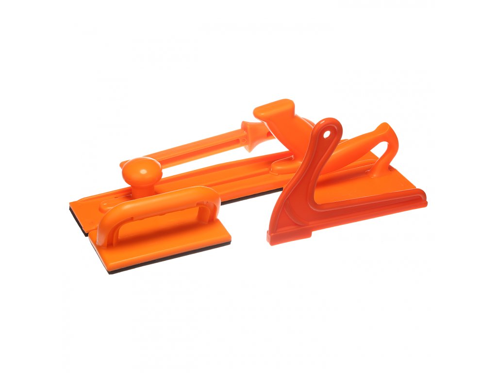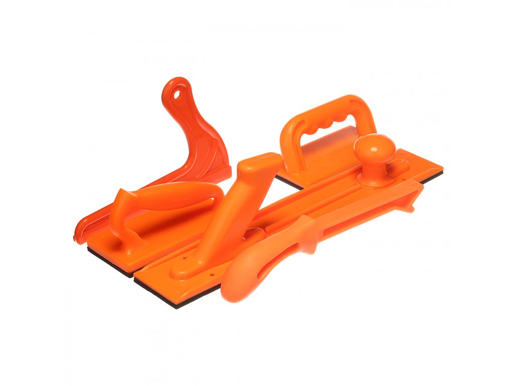 5 nástrojů pro nezbytnou ochranu řemeslníků při práci na okružních, pásových pilách, hoblovkách, frézách apod. Sada obsahuje: dlouhou, přítlačnou lištu; lištu tvaru A; lištu D; lištu V a přítlačnou lištu. Nástroje z tvrdého plastu zaručují bezpečnou práci.