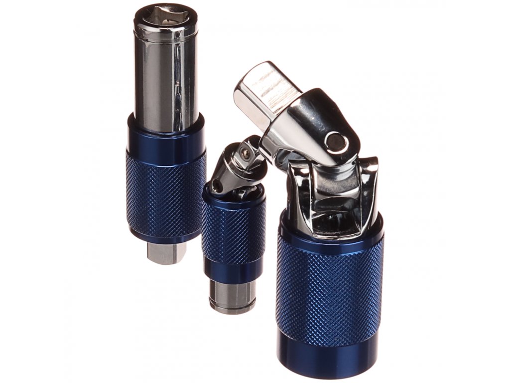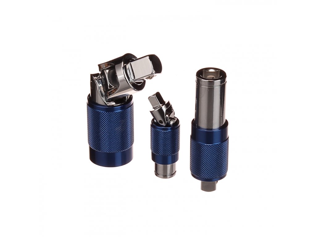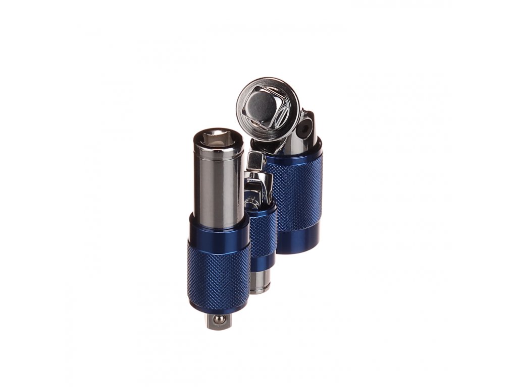 Univerzální sada tří kloubových adaptérů se čtyřhranem 1/4", 3/8" a 1/2" rozšiřuje možnosti použití ráčnových klíčů a hlavic. Díky kloubovému provedení umožňují snadný přístup i do hůře dostupných míst, kde není možné použít pevný nástavec. Podle potřeby je lze využít jako kloubové nebo pevné prodloužení. Jsou ideálním doplňkem pro autoservisy, dílny i domácí použití.