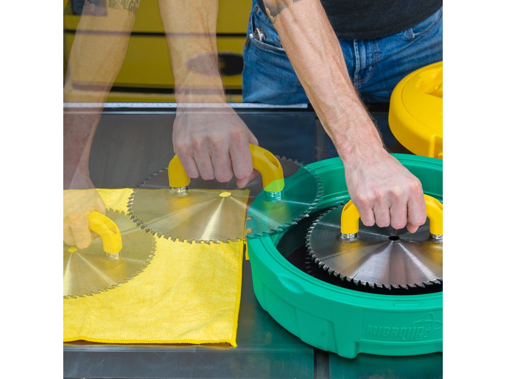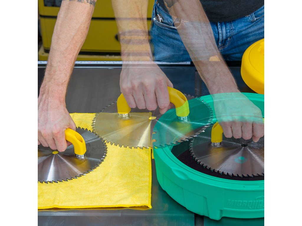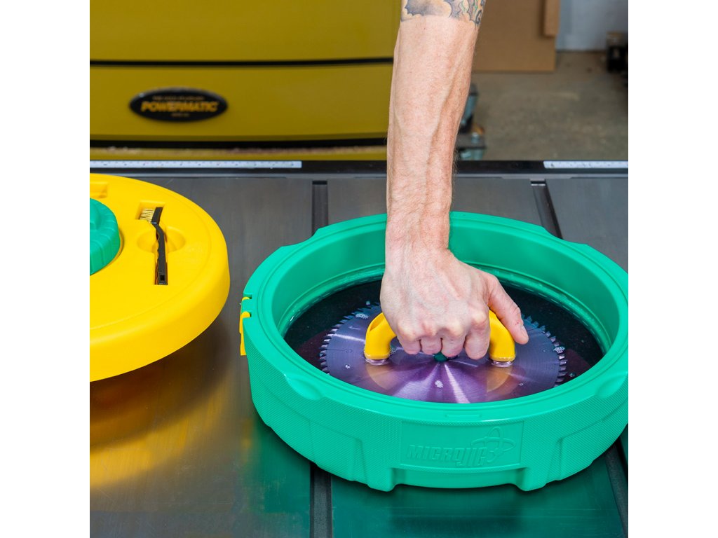 Velká sada pro čištění pilových kotoučů a bitů BLADECLEAN je nejrychlejší, nejbezpečnější a nejpříjemnější způsob čištění pilových kotoučů a frézovacích bitů. Špinavý pilový kotouč či bity zatěžují pilu či frézu, vytvářejí více tepla a často jsou mylně považovány za tupé. Vyhněte se broušení, když to není potřeba a pořádně je vyčistěte s čistícími podložkami z oxidu hlinitého.