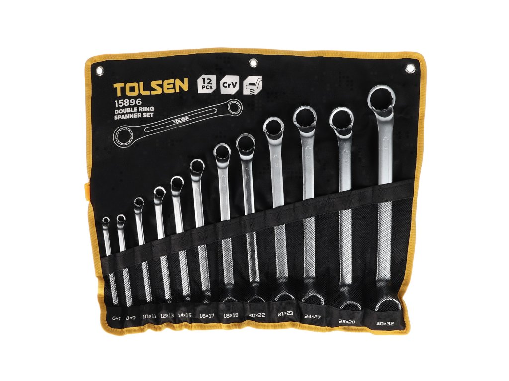 Tato kvalitní sada očkových klíčů zahrnuje 24 nejpoužívanějších velikostí v rozsahu 6 až 32 mm. Klíče jsou vyrobené podle normy DIN 838, což zaručuje přesné rozměry, vysokou pevnost a dlouhou životnost i při náročném použití. Povrchová úprava chromováním s matným (satin) finišem zvyšuje odolnost vůči opotřebení a korozi a zároveň zajišťuje pohodlné držení bez nechtěného klouzání.
