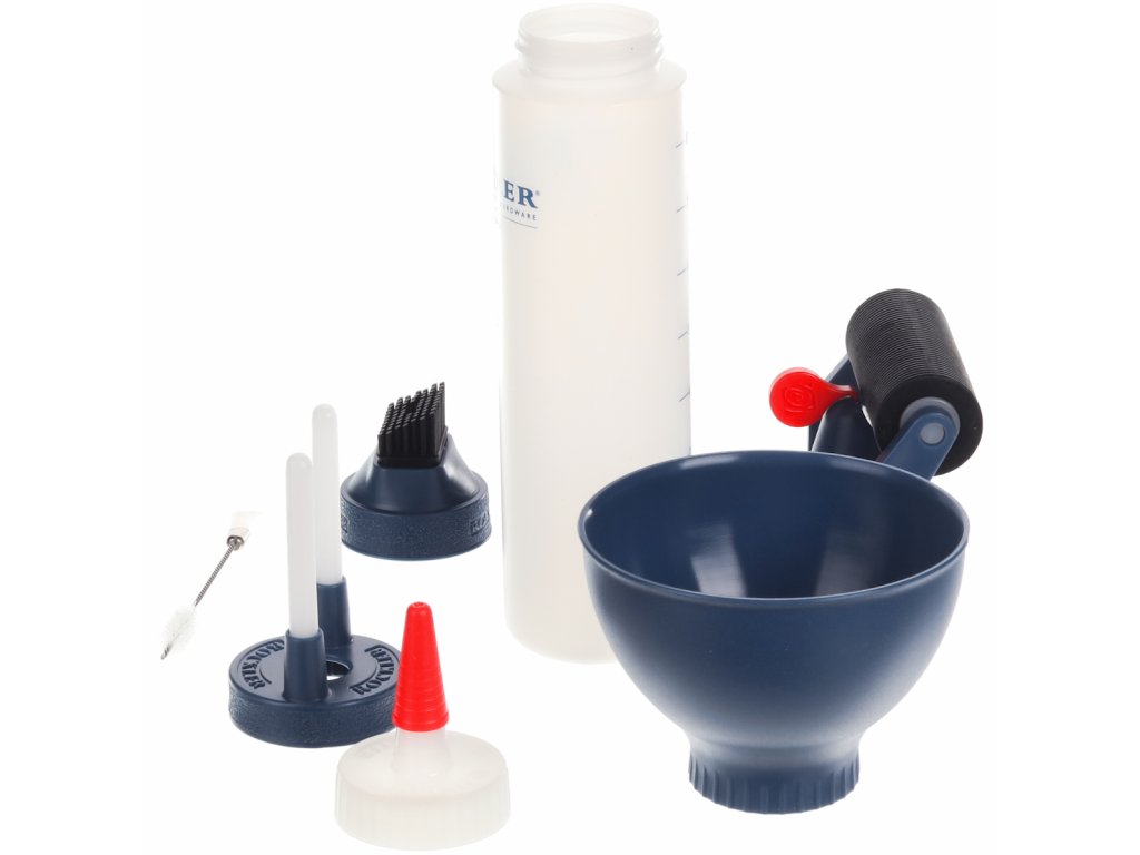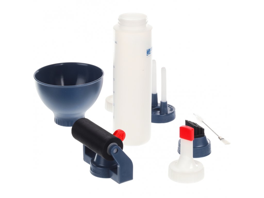 Vše je vyrobeno z materiálů, které se snadno čistí od lepidla. Silikonová štětka na nanášení lepidla nepouští štětiny a lepidlo se z ní po zaschnutí snadno vydrolí. Aplikační hroty lze uzavřít přiloženými krytkami.