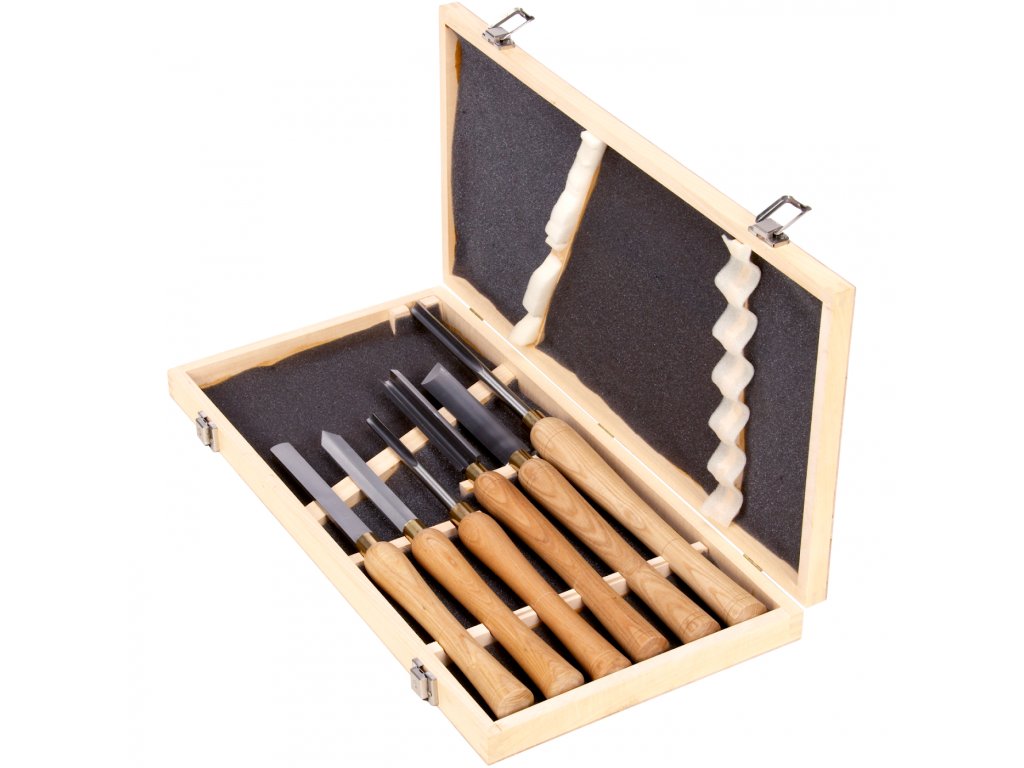 Obsahuje soustružnická dláta různých tvarů a velikostí, uložená v dřevěné kazetě. 3 ks celková délka 432 mm, rukojeť 235 mm, šířka 9,5; 4,8 a 4,8 mm. 2 ks celková délka 470 mm, rukojeť 280 mm, šířka 15,9 a 25,4 mm a 1 ks celková délka 578 mm, rukojeť 324 mm, šířka 9,5 mm. Materiál ocel HSS 4341, rukojeť dřevo.