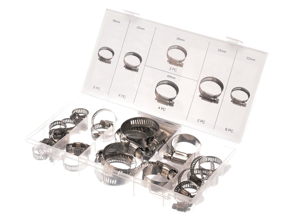 Stahovací, ocelové objímky pro hadice. Sada obsahuje objímky:
