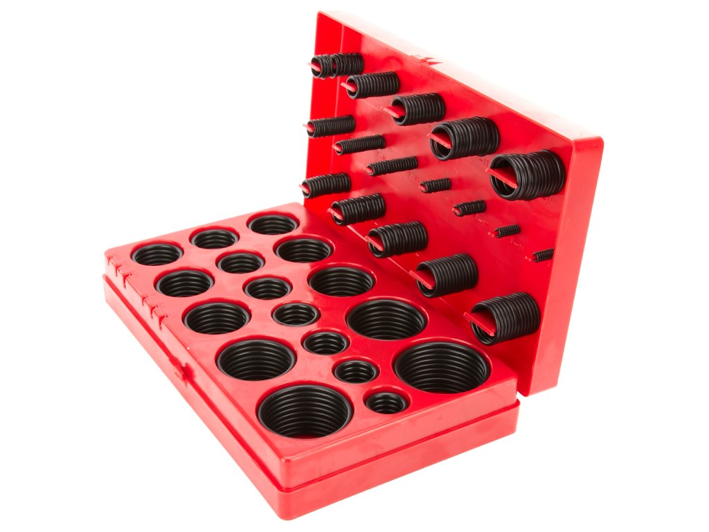 Sada O kroužků NBR70 o rozměrech (v mm) 3 × 1,5 ; 4,4 × 2; 5 × 2; 7 × 1,5; 10 × 1,5; 13 × 1,5; 10 × 2,5; 11 × 2,5; 13 × 2,5; 14 × 2,5; 16 × 2,5; 18 × 2,5; 19 × 2,5; 21 × 2,5; 22 × 2,5; 18 × 3,5; 20 × 3,5; 22 × 3,5; 23,5 × 3,5; 25 × 3,5; 26,5 × 3,5; 28 × 3,5; 30 × 3,5; 31 × 3,5; 33 × 3,5; 34,5 × 3,5; 36 × 3,5; 38 × 3,5; 41 × 3,5; 44 × 3,5; 47 × 3,5; 50 × 3,5. Tyto kroužky jsou určeny pro použití v místech, kde jsou na materiál kladeny zvýšené nároky na odolnost oleji, tam kde dochází ke styku s tuky, minerálními a živočišnými oleji, kde jsou nároky na dobré mechanické vlastnosti, stárnutí a bobtnavost. Teplotní odolnost –30 až +90 °C.