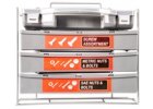 Sady montážního materiálu jsou praktickým řešením pro každého řemeslníka, kutila i profesionála. V našem e-shopu najdete kompletní sety šroubů, matic, podložek, hmoždinek, vrutů, o-kroužků, hřebíků a dalších spojovacích prvků přehledně roztříděných a uložených v pevných organizérech. Díky tomu máte vždy po ruce ten správný díl a ušetříte čas při hledání.